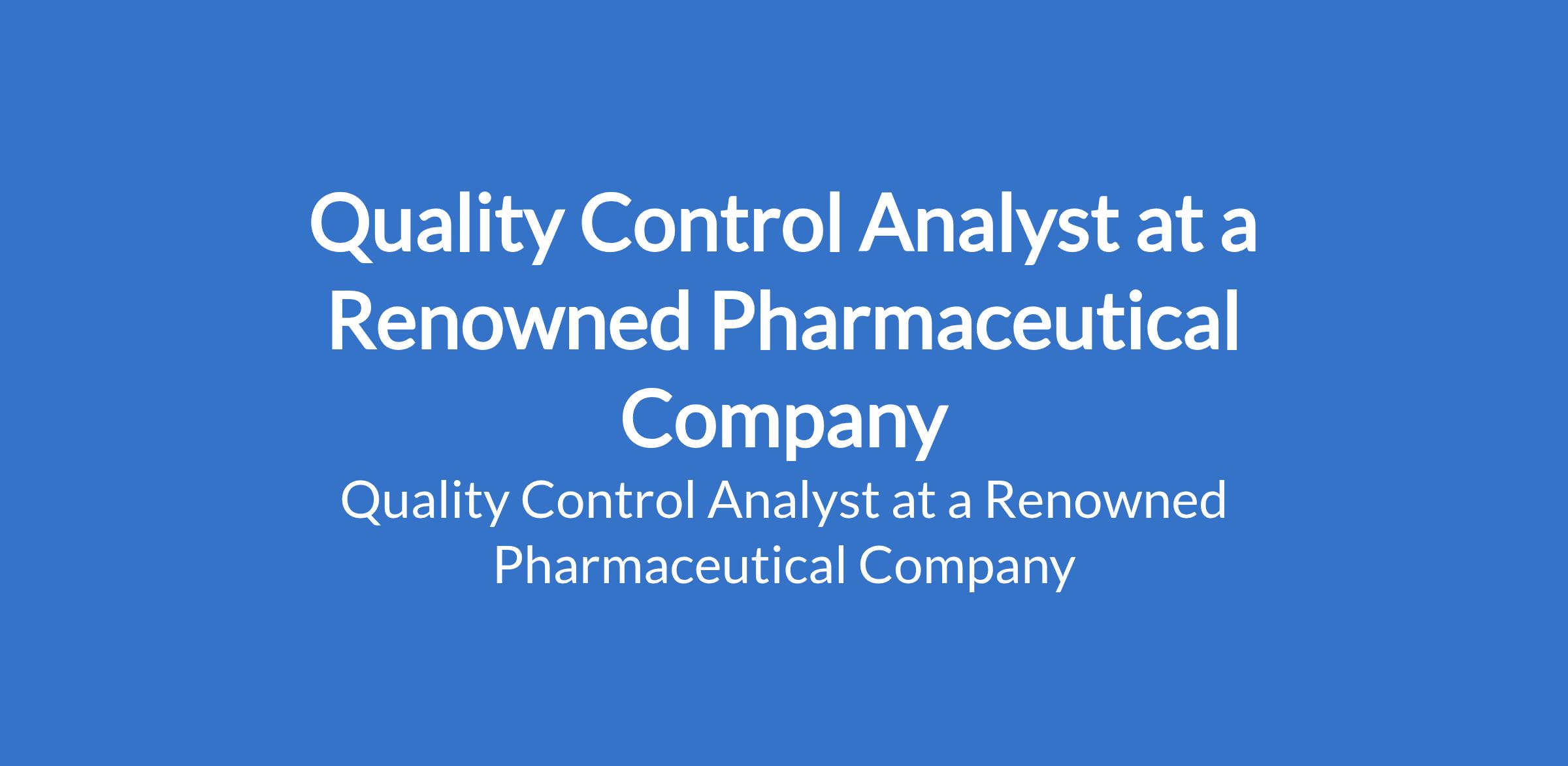Quality Control Analyst at a Renowned Pharmaceutical Company