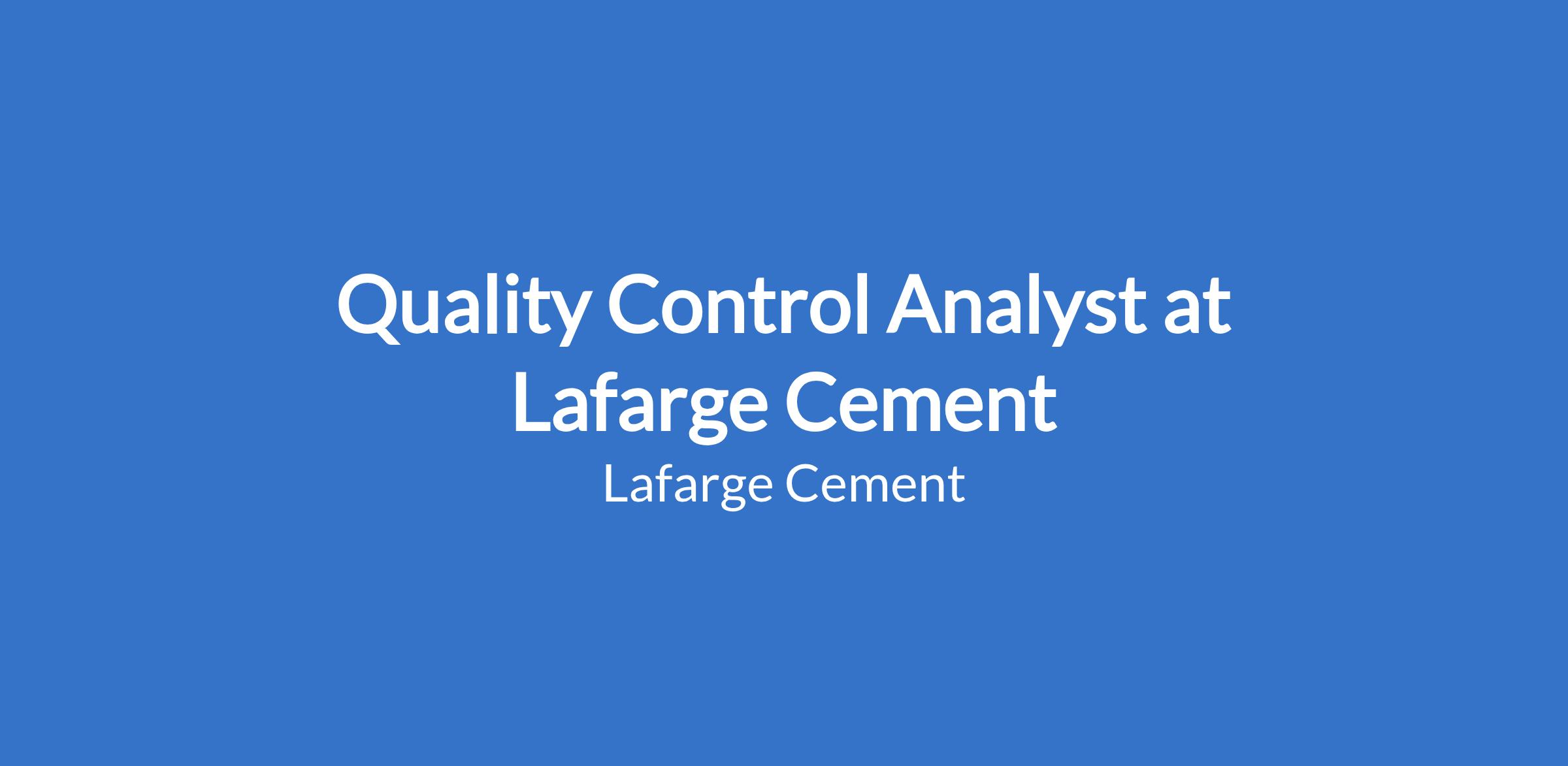 Follows Lafarge Quality Technical Standard (LQTS) in all laboratory tests