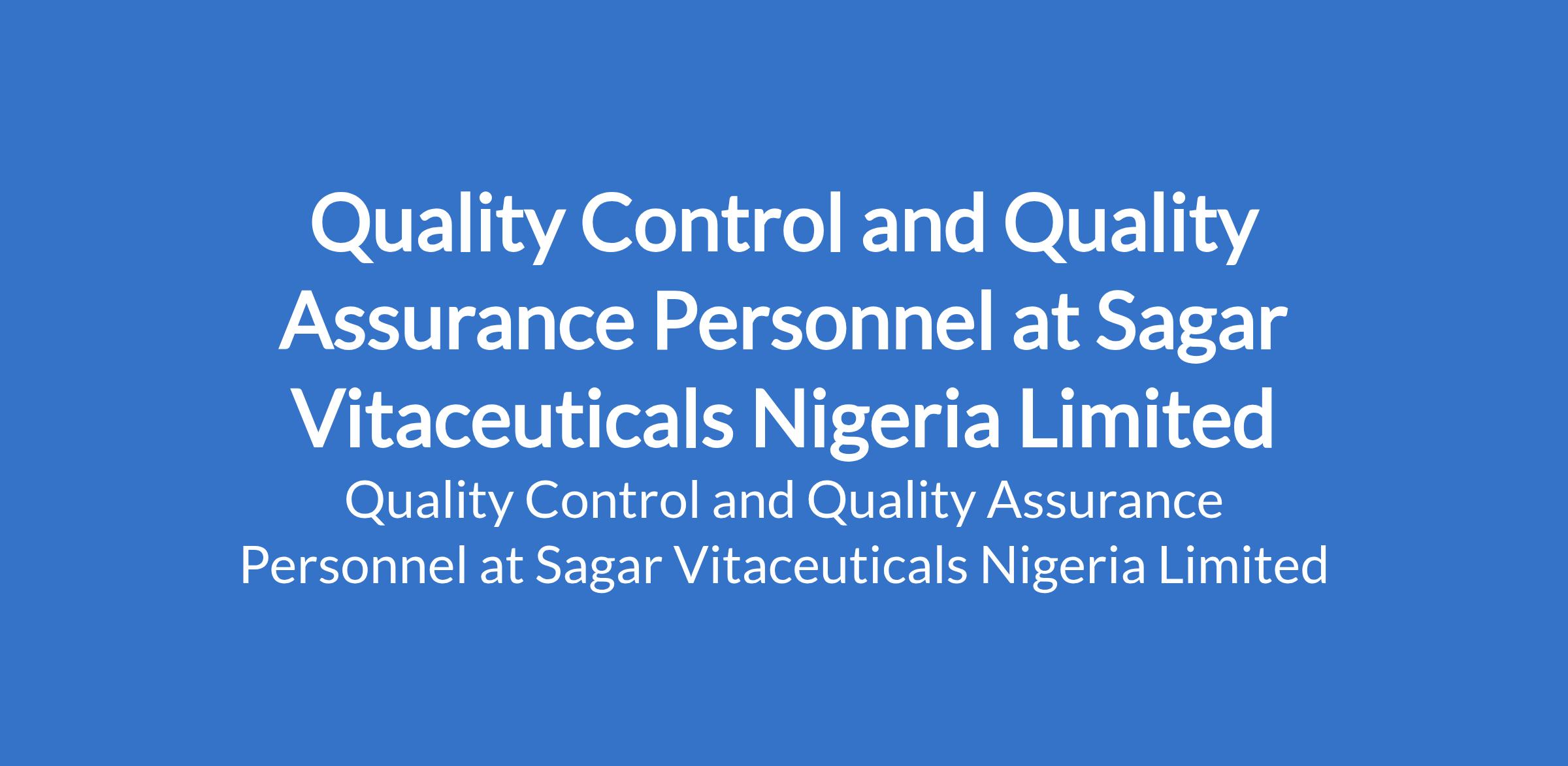 Sagar Vitaceuticals Nigeria Limited is recruiting to fill the position of: Quality Control and Quality Assurance Personnel. The position is located in Mowe, Ogun State. Interested candidates should possess relevant qualifications.