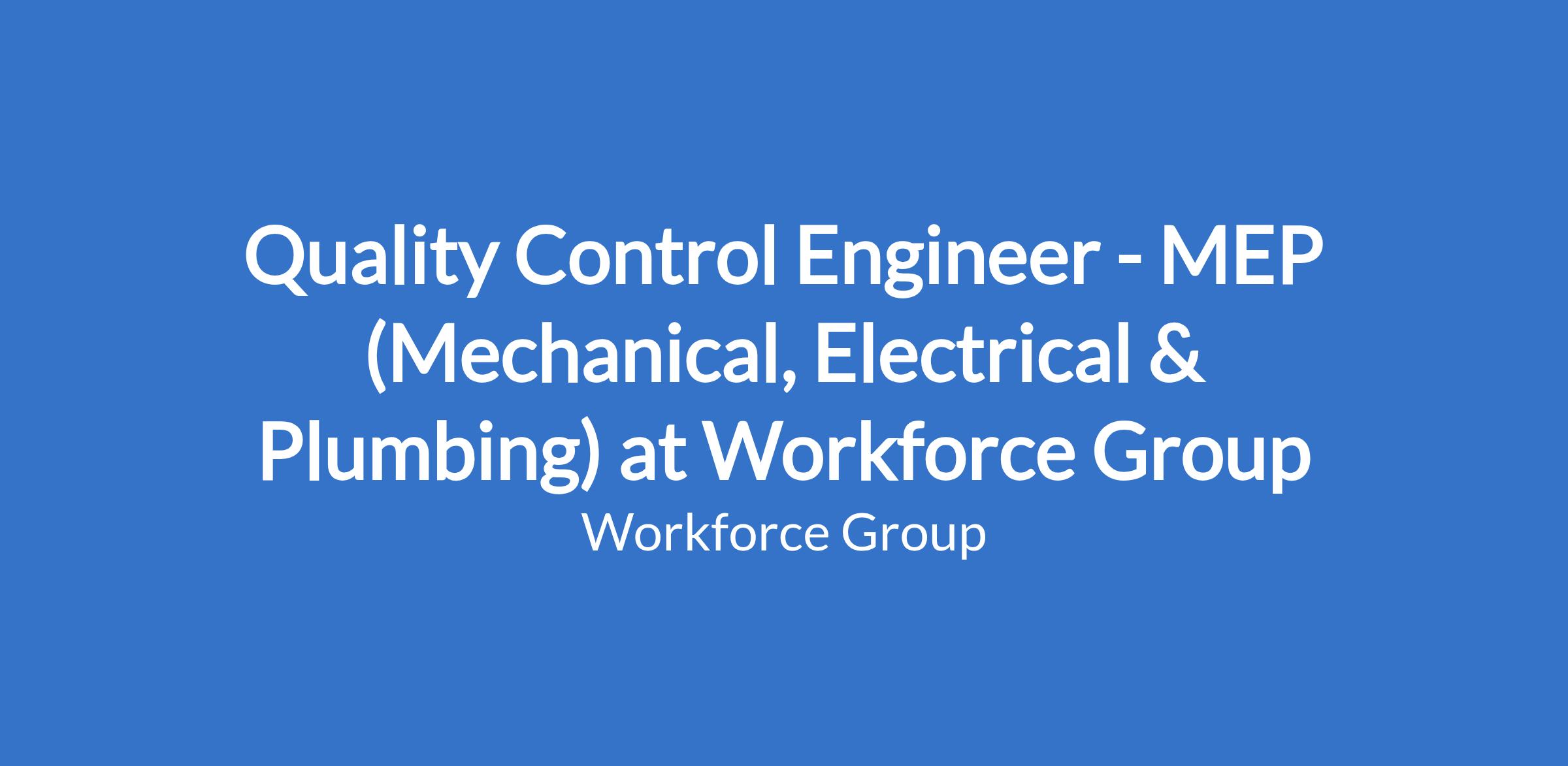 Quality Control Engineer - MEP (Mechanical, Electrical & Plumbing) at Workforce Group