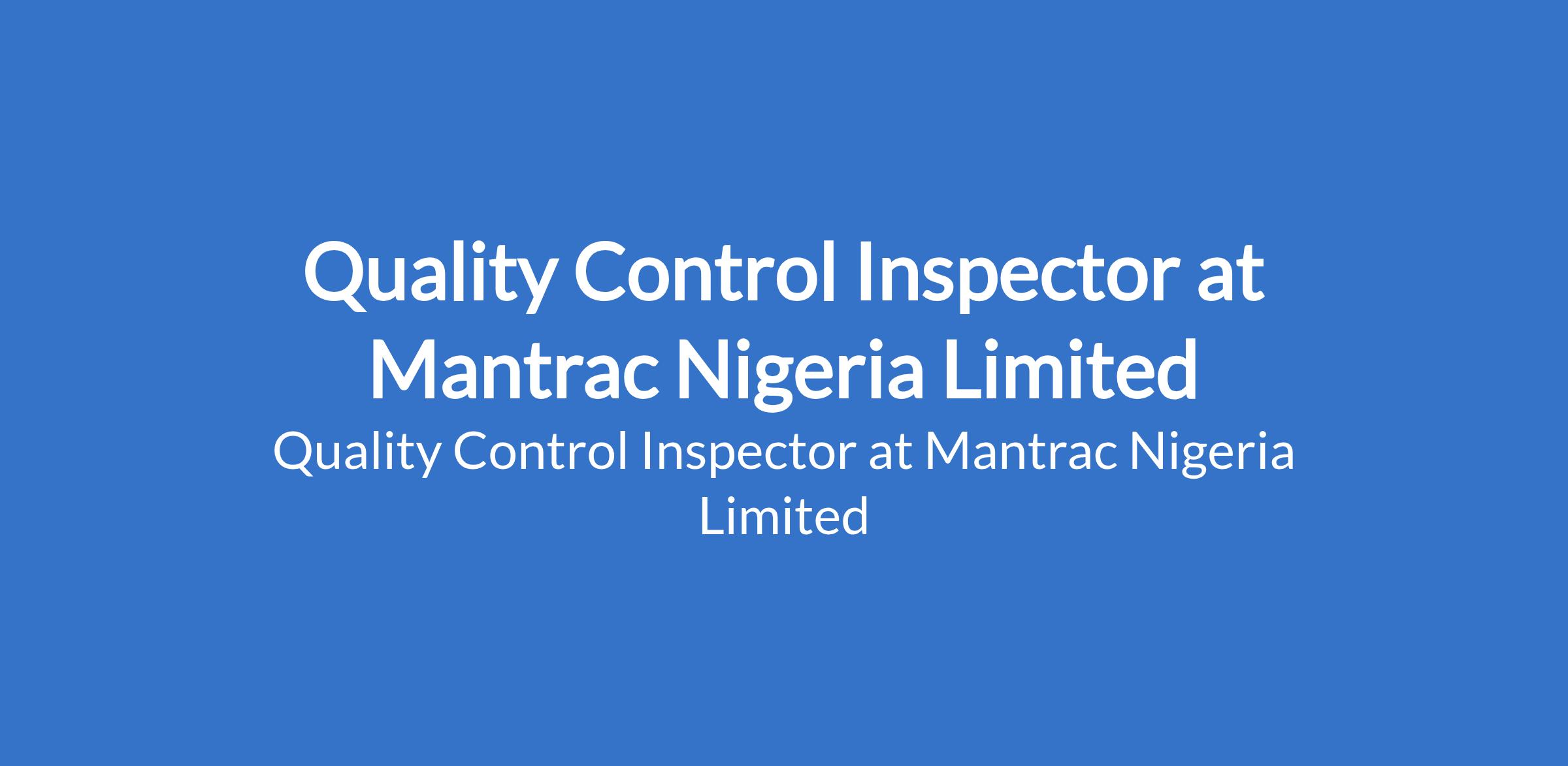 Mantrac Nigeria Limited is recruiting to fill the position of: Quality Control Inspector. The position is located in Lagos State. Interested candidates should be graduates of Engineering, Industrial Chemistry / Science related discipline with 1-2 years of relevant experience.