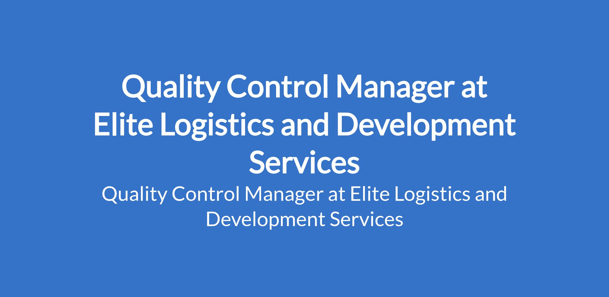 Elite Logistics and Development services is recruiting to fill the position of: Quality Control Manager. The position is located in Lagos State. Salary: N2,500,000 - N3,000,000 annually. Interested candidates should possess a BSc / BA in Business Administration or relevant field; a certification of quality control is a strong advantage with proven experience as quality manager.