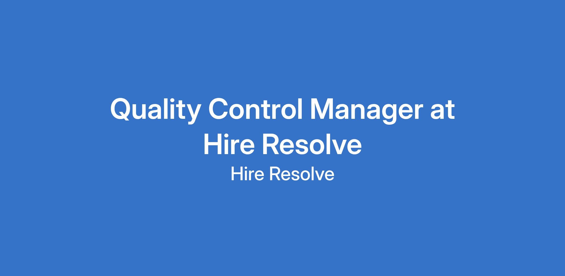 Hire Resolve's client is urgently seeking the expertise of a Quality Control Manager in Tokai, Cape Town.