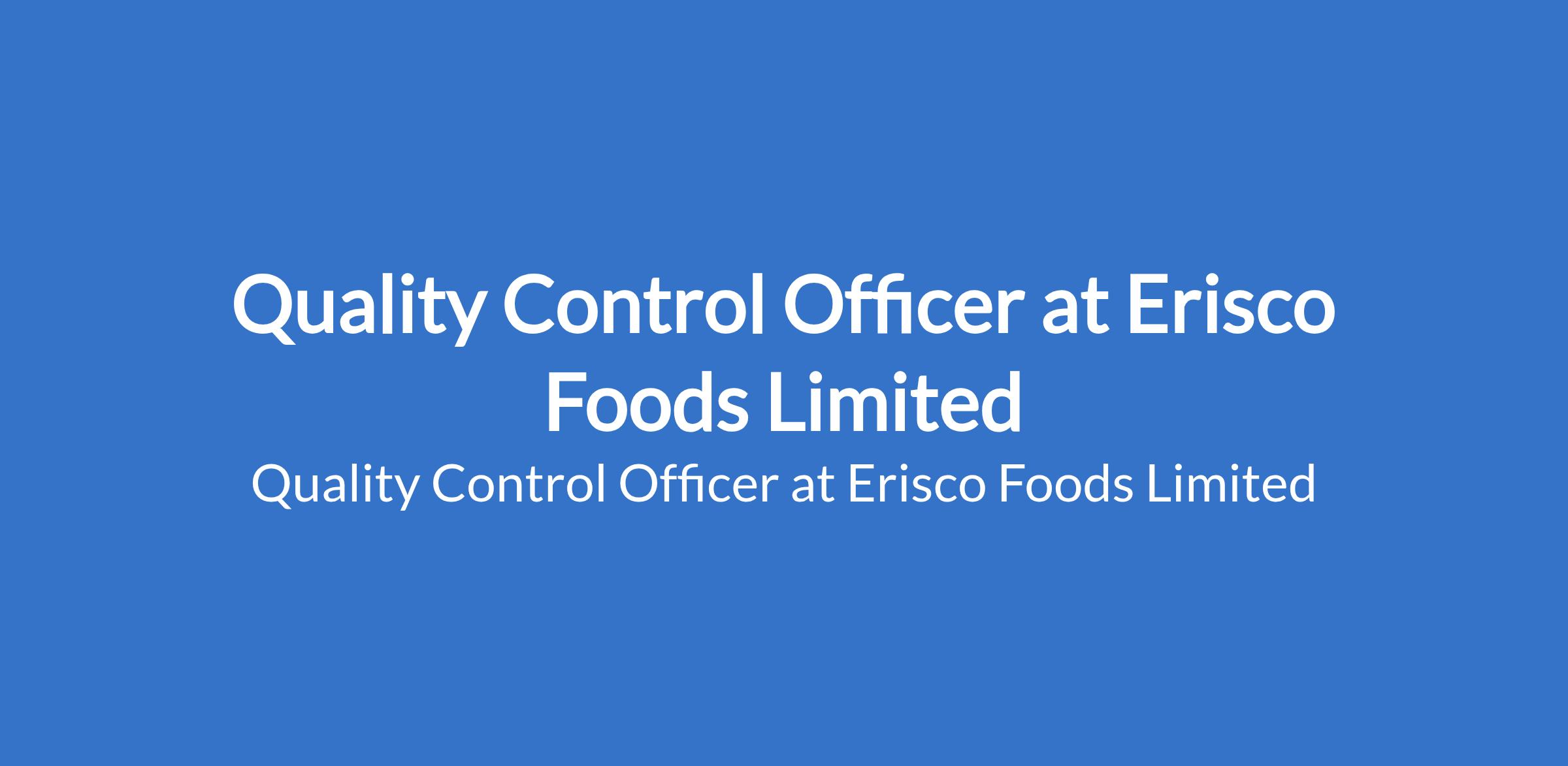 Erisco Foods Limited is recruiting to fill the position of: Quality Control Officer. The position is located in Ikeja, Lagos State. Interested candidates should possess a B.Sc Degree / HND qualification in Food Science & Technology, Microbiology, Industrial Chemistry, or a related field with a minimum of 5 years experience in a quality control role within a manufacturing or FMCG environment.