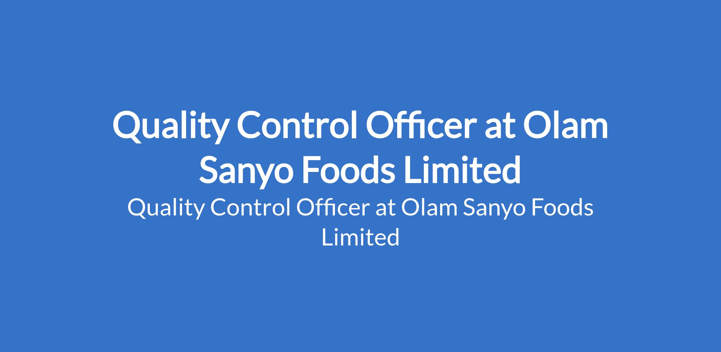 Olam Sanyo Foods Limited is recruiting to fill the position of: Quality Control Officer. The position is located in Apapa, Lagos State. Salary: N120,000 - N130,000 monthly. Interested candidates should possess relevant qualifications with experience.
