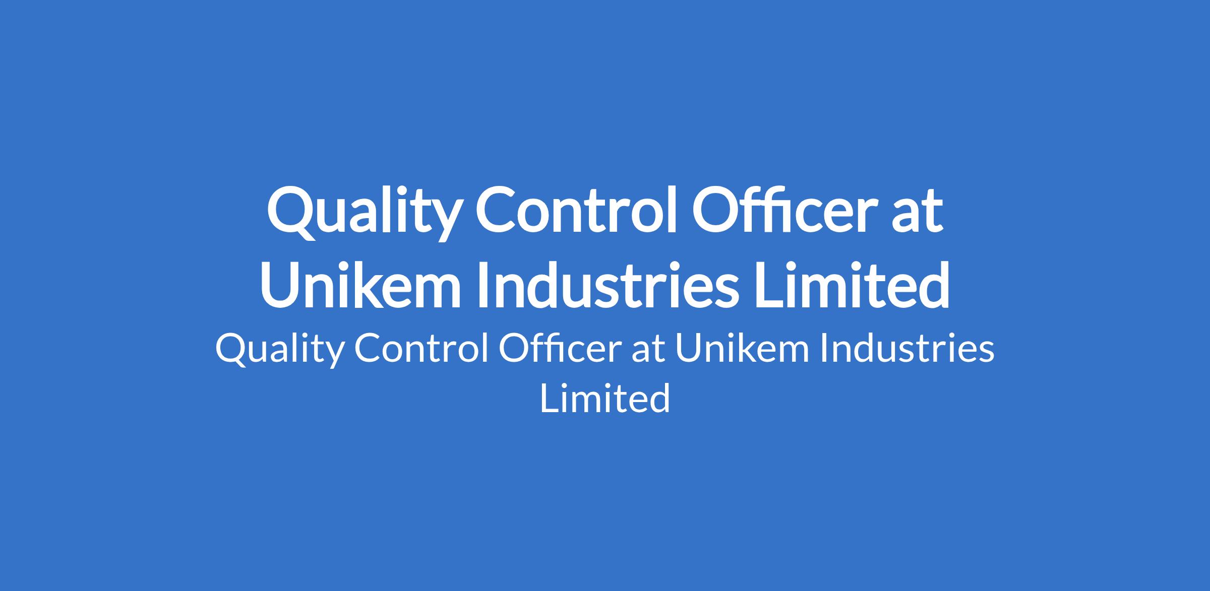 Quality Control Officer at Unikem Industries Limited