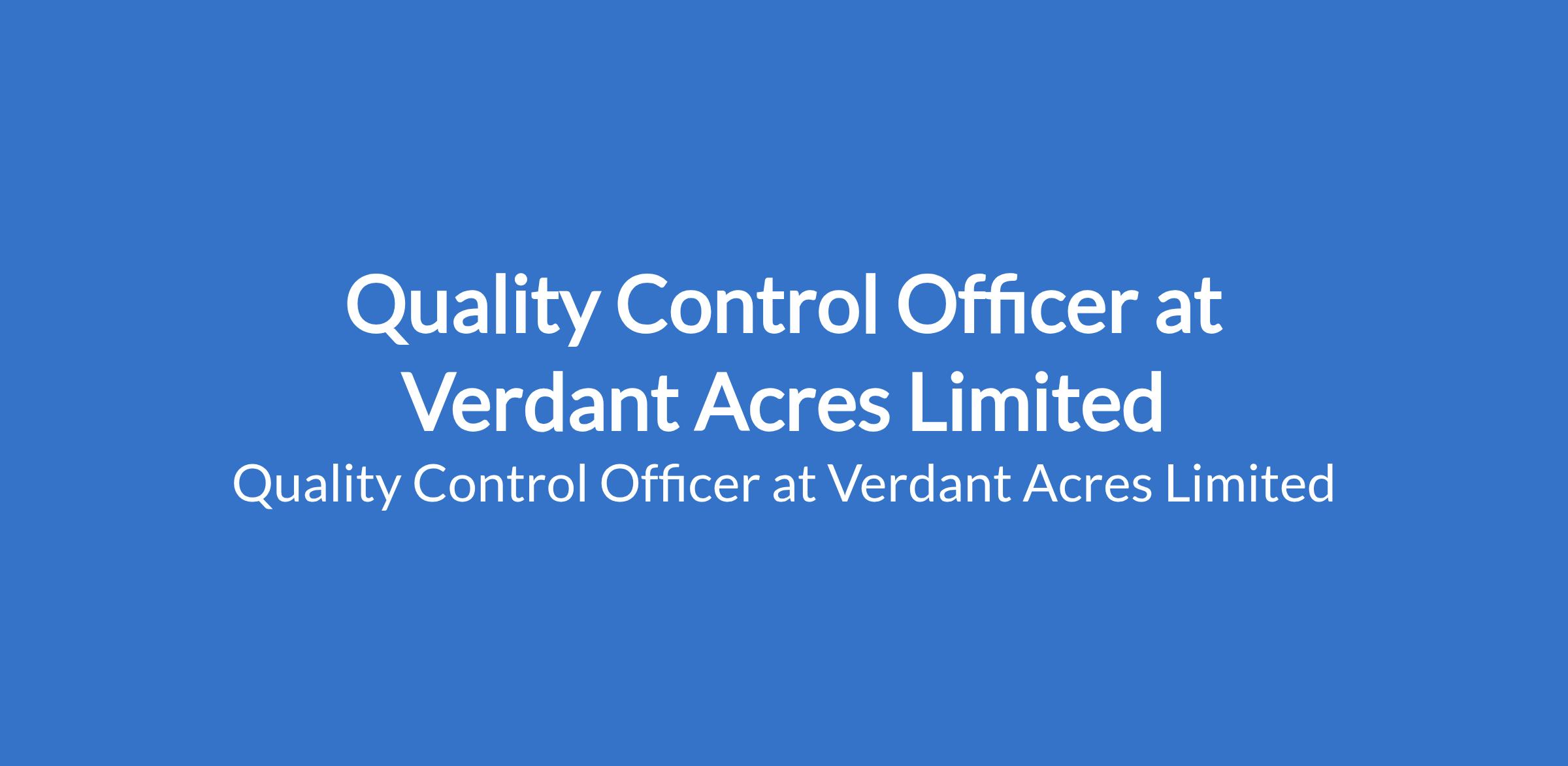 Verdant Acres Limited is recruiting to fill the position of: Quality Control Officer. The position is located in Mkpat Enin, Akwa Ibom State. Interested candidates should possess a Degree in Food Science, Microbiology, Quality Assurance, or related fields.