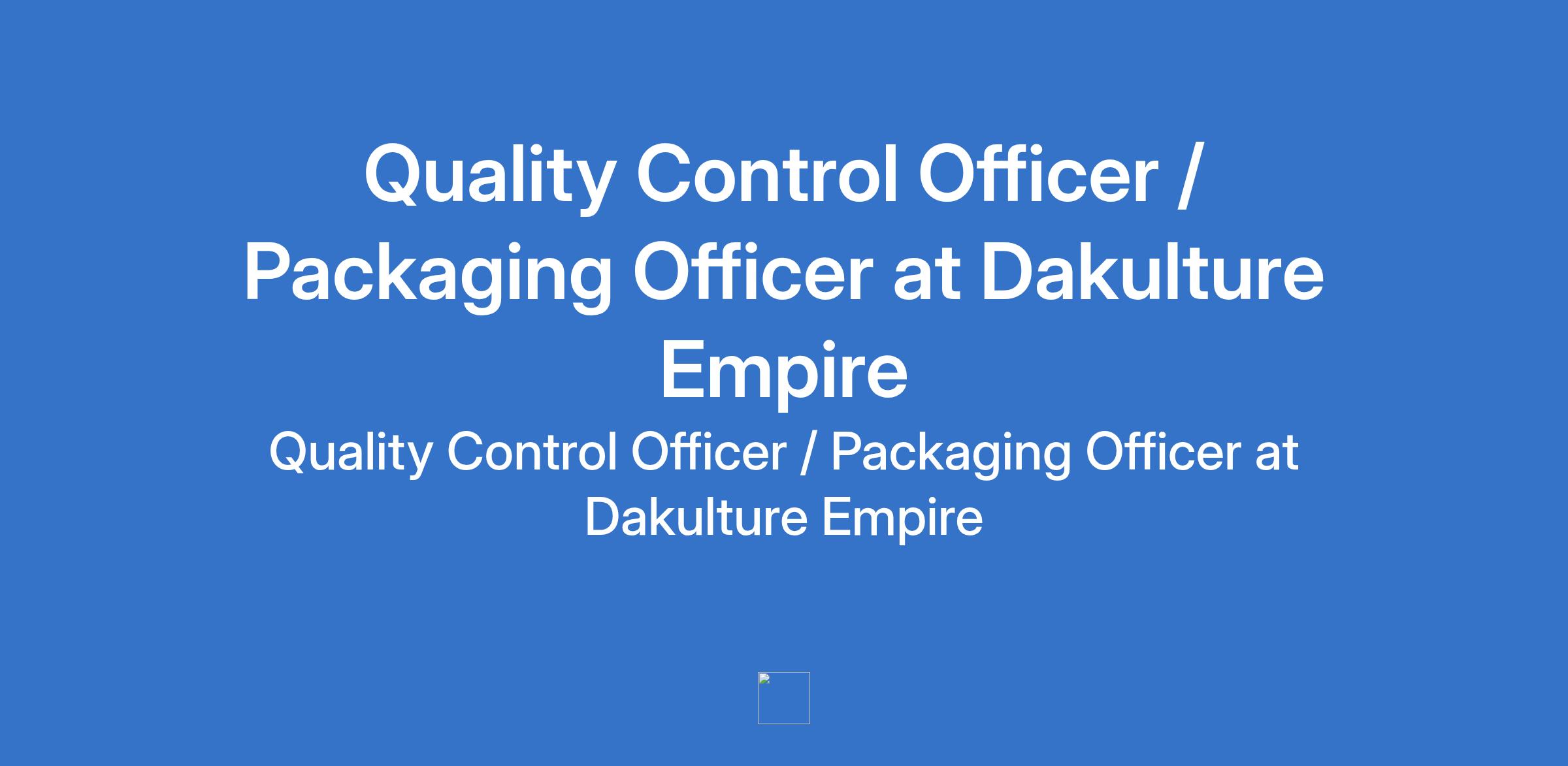Quality Control Officer / Packaging Officer at Dakulture Empire
