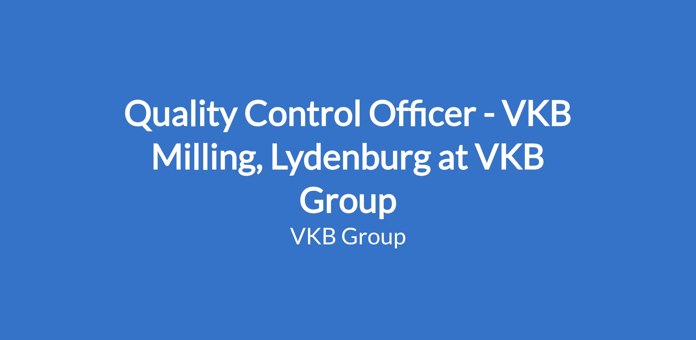 Quality Control Officer - VKB Milling, Lydenburg at VKB Group