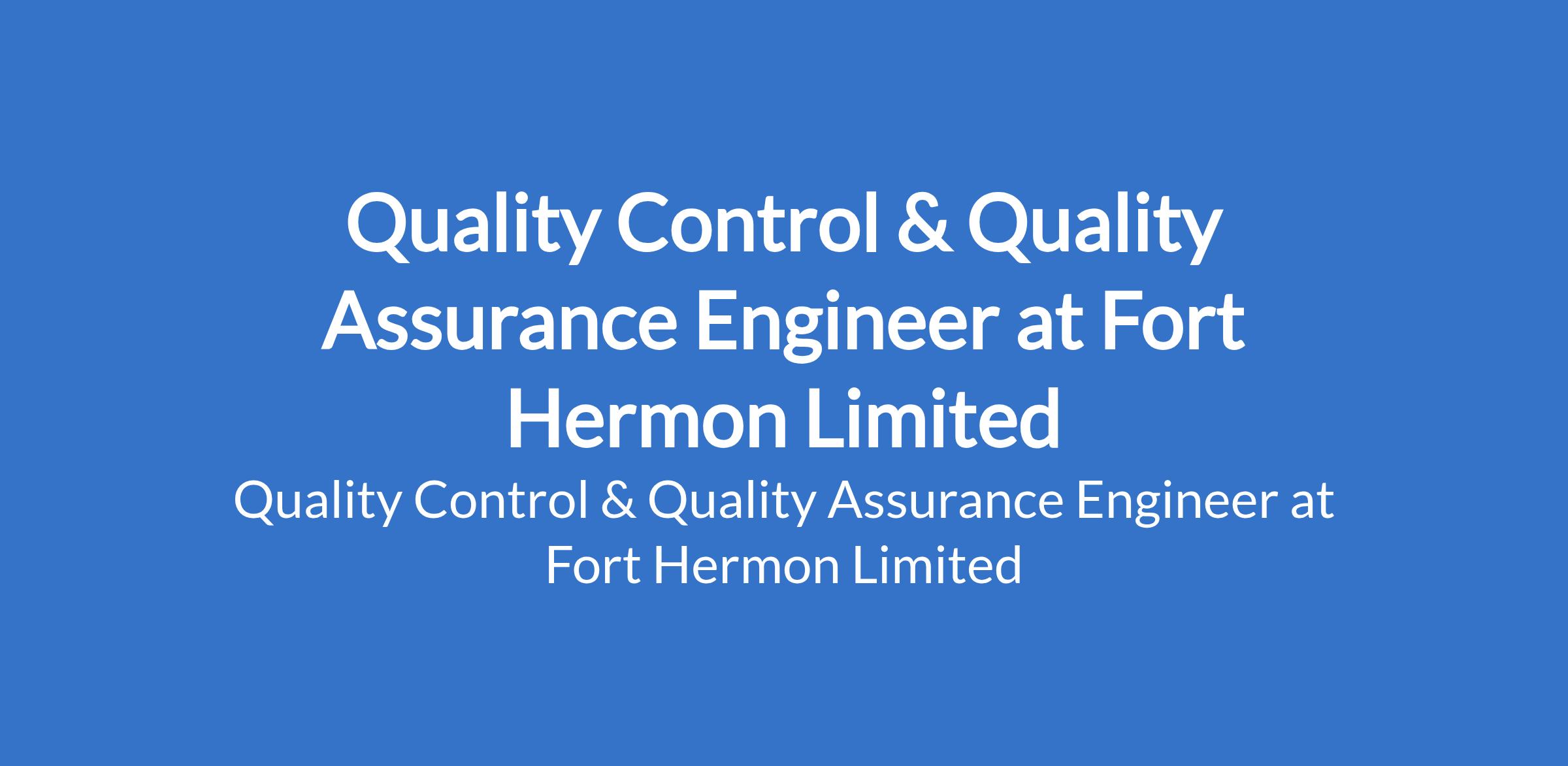 Fort Hermon Limited is recruiting to fill the position of: Quality Control & Quality Assurance Engineer. The position is located in Mowe, Ogun State. Salary: N250,000 - N300,000 / month. Interested candidates should possess relevant qualifications with experience.