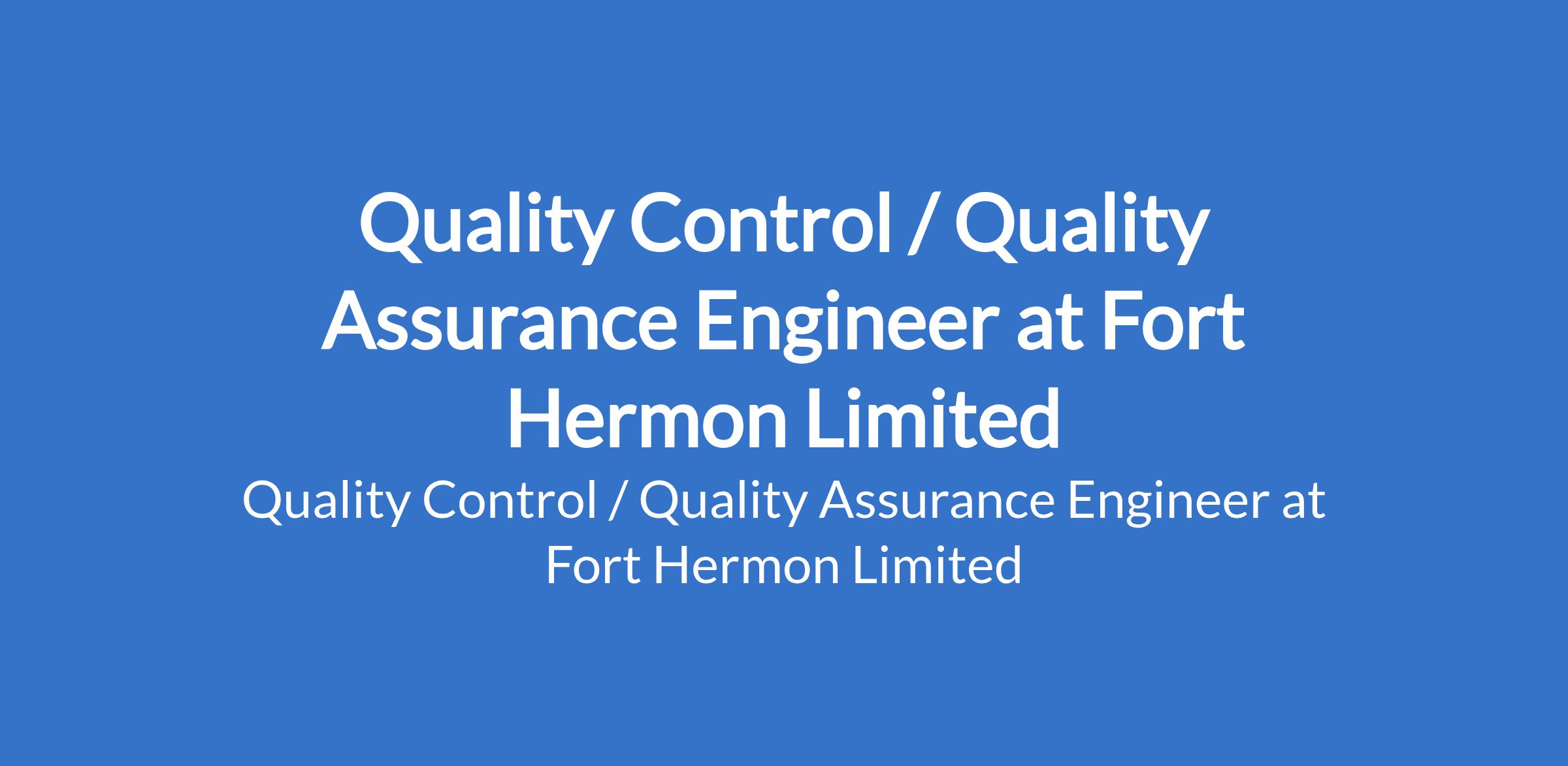 Fort Hermon Limited is recruiting to fill the position of: Quality Control / Quality Assurance Engineer. The position is located in Gusau, Zamfara State. Salary: N300,000 - N400,000 / month. Interested candidates should possess relevant qualifications with experience.