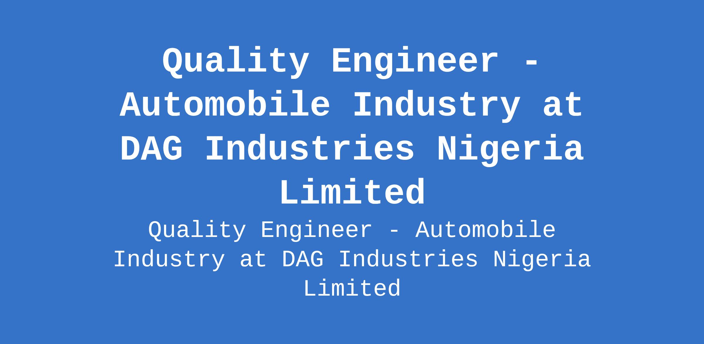 DAG Industries Nigeria Limited is recruiting to fill the position of: Quality Engineer - Automobile Industry. The position is located in Ikeja, Lagos State. The Quality Engineer is responsible for ensuring that automotive products and manufacturing processes meet internal quality standards, customer requirements, and regulatory specifications. Interested candidates should possess a Bachelors Degree in Mechanical Engineering, Automobile Engineering, Industrial Engineering, or related fields with 3 - 7 years of experience as a Quality Engineer in the automobile or auto-component manufacturing industry.