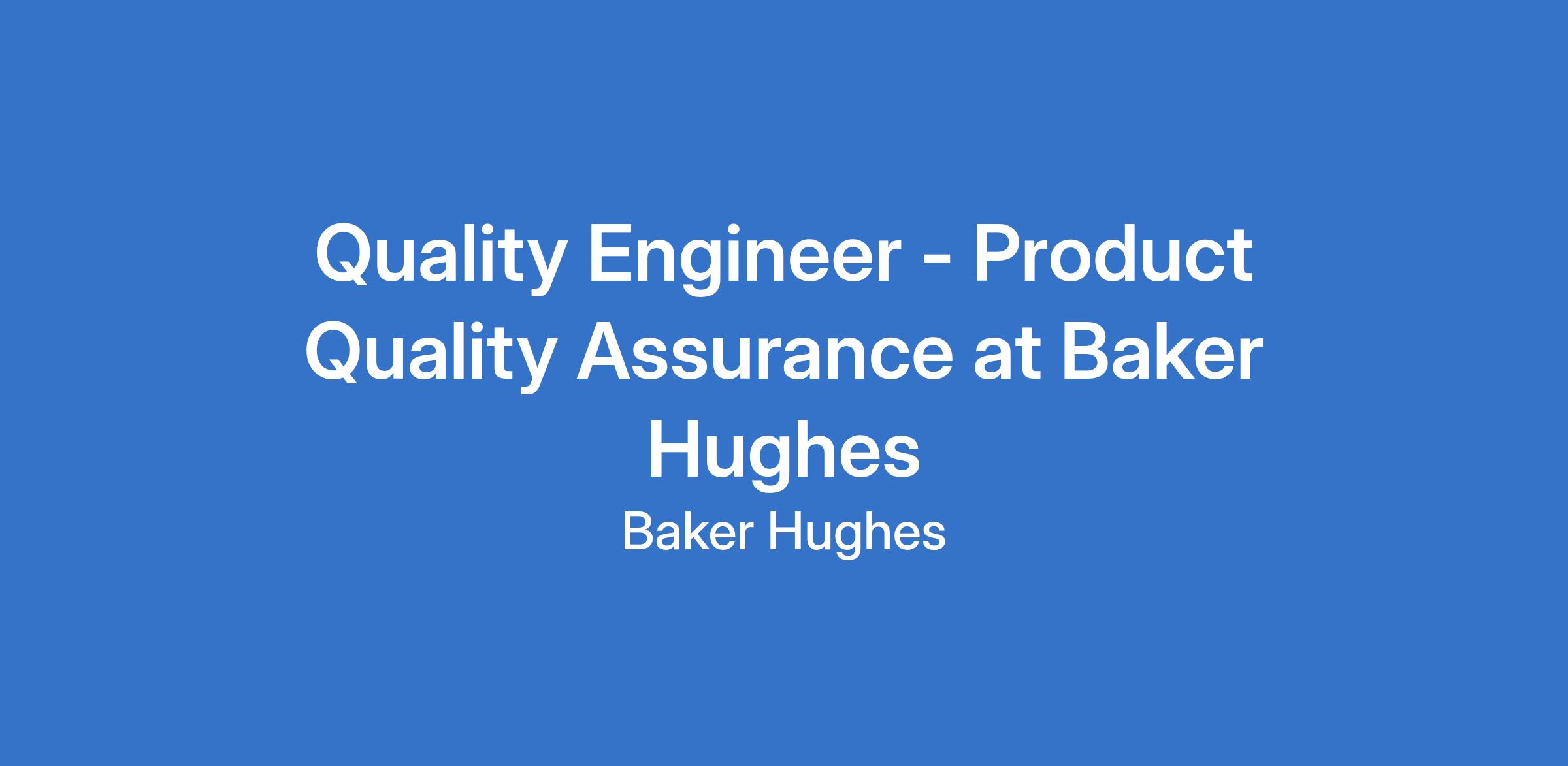 Quality Engineer - Product Quality Assurance at Baker Hughes