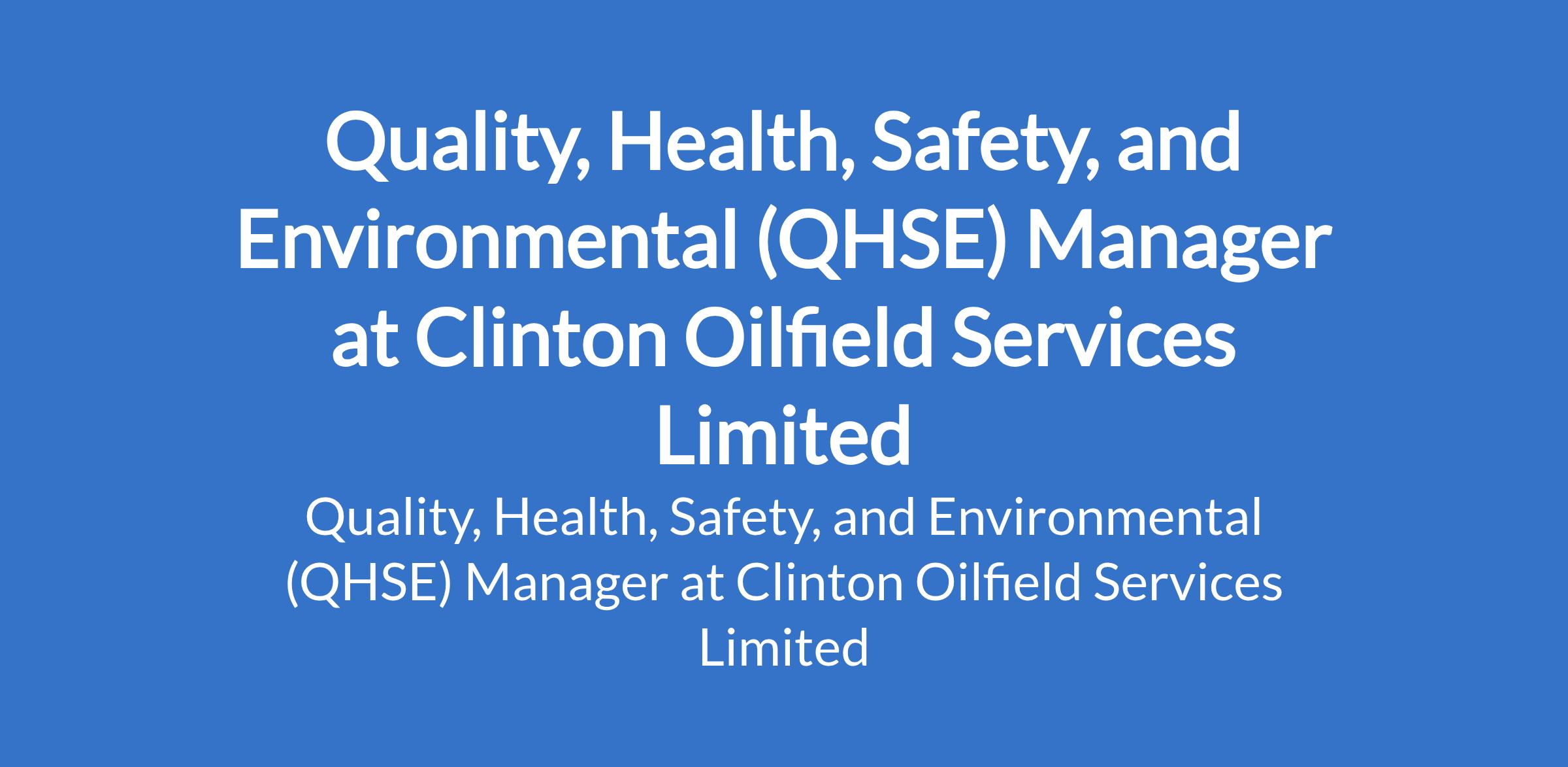 Clinton Oilfield Services Limited is recruiting to fill the position of: Quality, Health, Safety, and Environmental (QHSE) Manager. The position is located in Rivers State. Interested candidates should possess a Bachelors Degree in Engineering, Sciences, or related field with 7 10 years experience in QHSE, preferably in oil & gas or logistics.