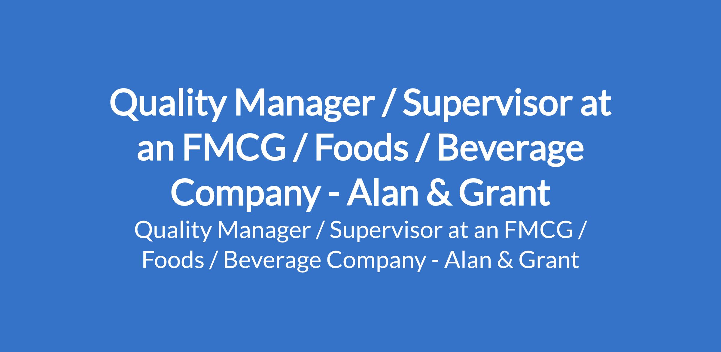 Alan & Grant - Our client, an FMCG / Foods / Beverage Company is recruiting to fill the position of: Quality Manager / Supervisor. The position is located in Lagos State. Interested candidates should possess a Bachelor's Degree in Food Science, Chemistry, Microbiology or related fields with 5+ years of experience in Quality Assurance, Food Safety, Production Quality, or similar roles in the food or FMCG industry.