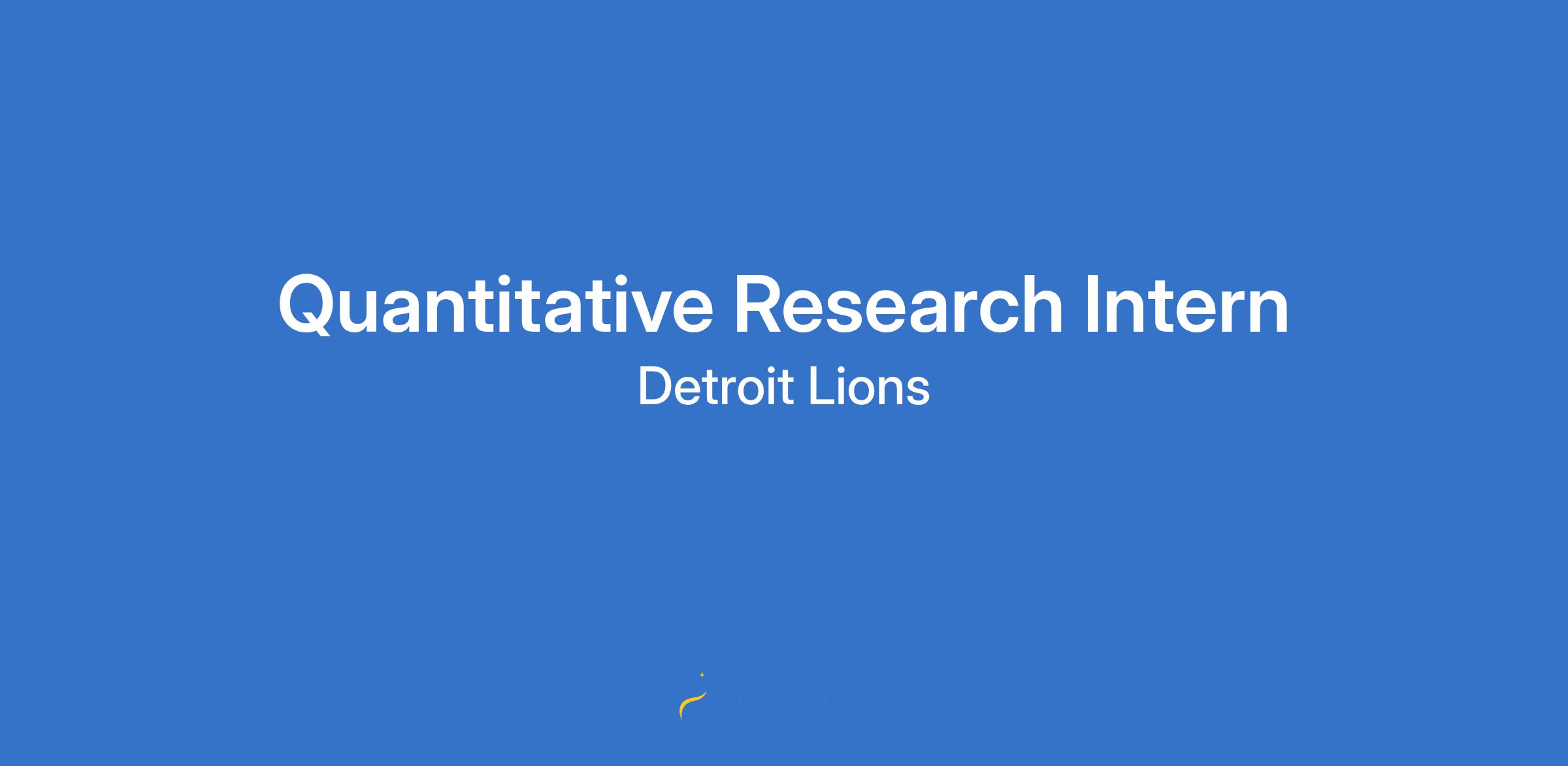 The Detroit Lions are seeking a motivated and independent intern to complete a football-based quantitative research project. This is a remote, part-time, paid internship structured as an educational and professional development opportunity. The internship will require approximately 15 hours of work per week for 10 weeks, and will include regular check-ins with the project lead and project milestones.QUALIFICATIONS/REQUIREMENTS:- Passion for the game of football- Intellectual curiosity and enthusiasm for answering questions with data- Strong quantitative intuition and skills- Ability to build statistical models in R or Python- Coursework in statistics and/or machine learning- Strong work ethic, integrity, and commitment to confidentiality.- Self-directed, proactive, and able to work independently- Interns must perform all work from within the United States. The work location will be treated as the internâs physical location.- Employment is at-will and may be terminated by either the intern or the organization at any time, with or without cause or notice.SUPPLEMENTAL MATERIALS (OPTIONAL)- Please feel free to include any prior data analytics deliverables with your application, such as competition submissions (e.g., NFL Big Data Bowl), theses, class papers, GitHub repos, blog posts, presentation slides, or detailed social media threads. Only include materials for which you the authority to share and submit.- If you do not have any relevant projects, we do not expect you to complete one for the purpose of this applicationWORKING CONDITIONS: **Work Environment:** This is a remote internship. Interns are expected to maintain a safe and distraction-free work environment. The organization recommends that interns establish an ergonomic workstation. Interns are encouraged to take regular breaks and to report any discomfort related to their work setup.