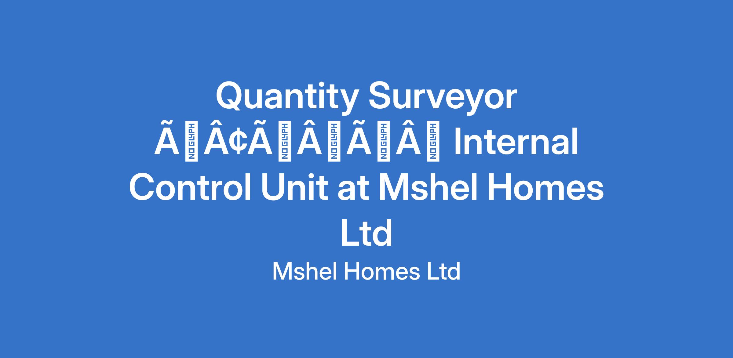 Quantity Surveyor âÃÂàInternal Control Unit at Mshel Homes Ltd