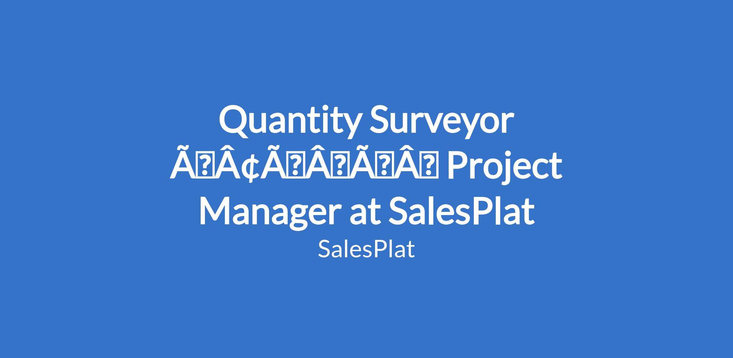 Quantity Surveyor âÃÂàProject Manager at SalesPlat