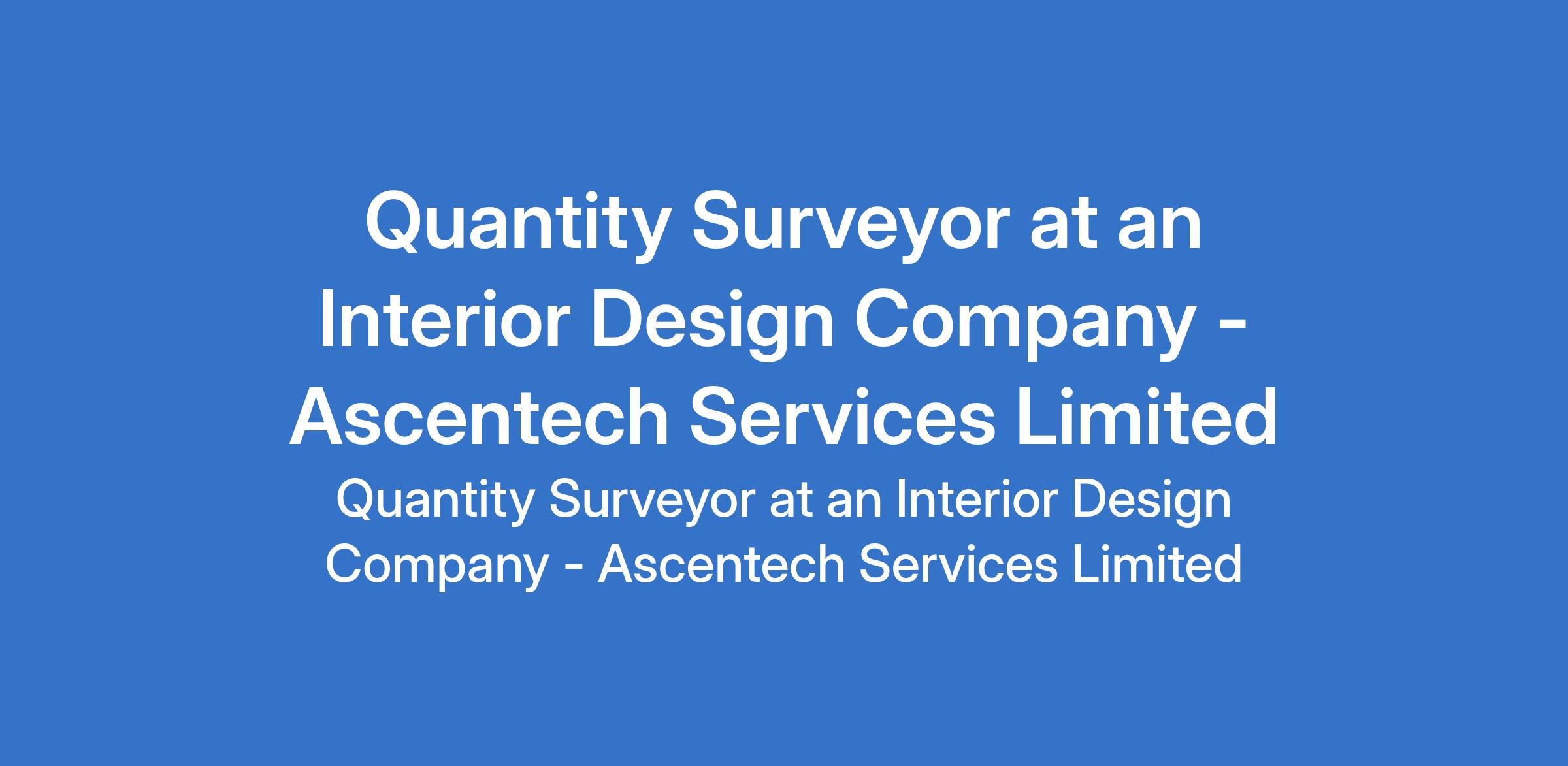 Ascentech Services Limited - Our client in the interior design sector is recruiting to fill the position of: Quantity Surveyor. The position is located in Victoria Island Lagos, State. Salary: N120,000 - N220,000 per month. Interested candidates should possess an HND / B.Sc Degree in Quantity Surveying or related fields with 2 - 4 years relevant experience (interior fit-out experience is an advantage).