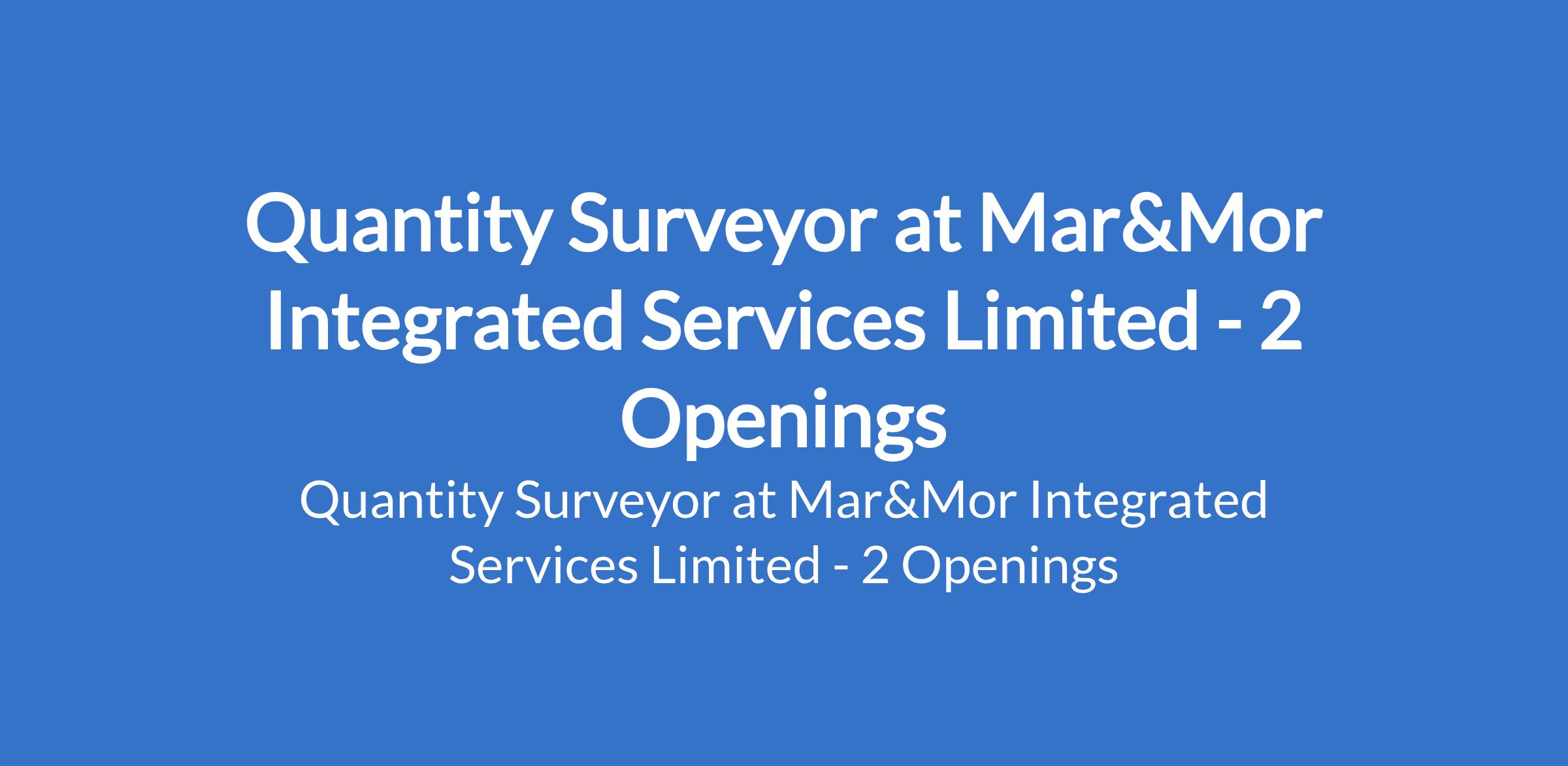Mar&Mor Integrated Services Limited is recruiting to fill the position of: Quantity Surveyor. The position is located in Abuja (FCT) & Lagos State. Interested candidates should possess a University Degree in Quantity Surveying with a minimum of 4 years of direct experience in the building services industry with a focus on Electromechanical, Firefighting, HVAC, plumbing and Extra-Low Voltage systems projects.
