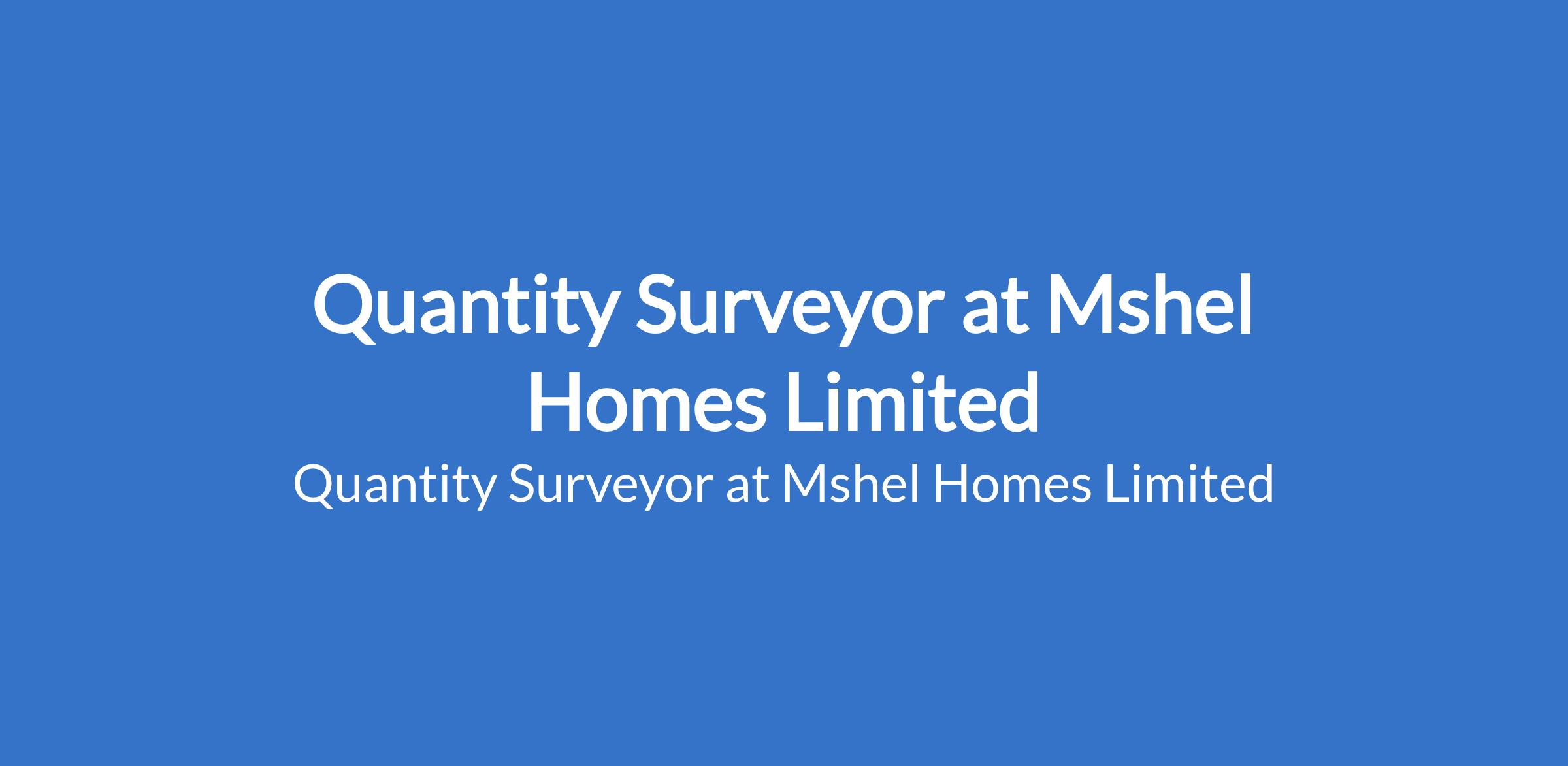 Mshel Homes Limited is recruiting to fill the position of: Quantity Surveyor. The position is located in Abuja. Salary: N200,000 - N300,000 monthly. Interested candidates should possess a Bachelor's Degree in Quantity Surveying, Construction Management, or a related field with a minimum of 5 years of experience as a Quantity Surveyor in the construction industry.