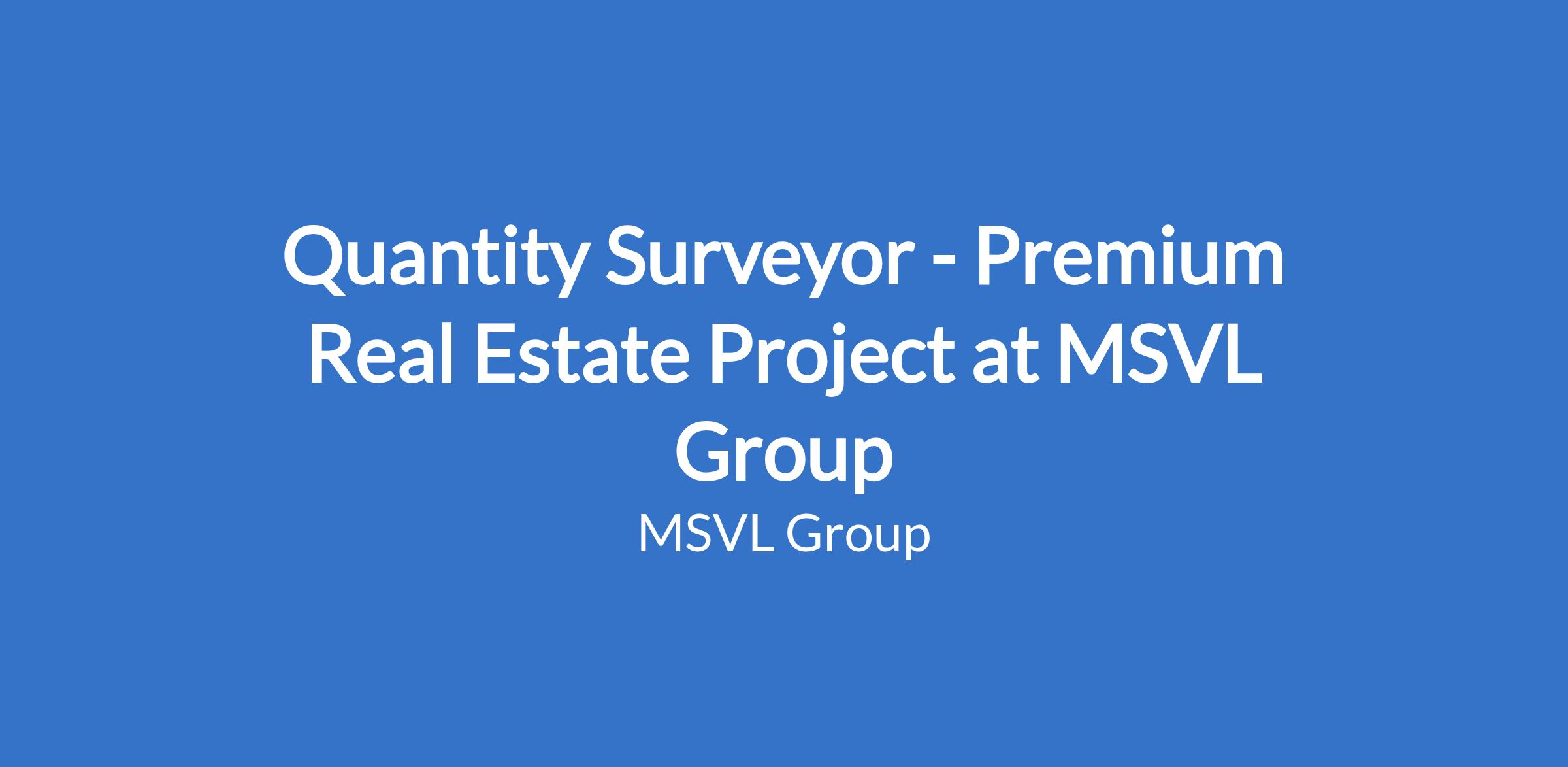 Quantity Surveyor - Premium Real Estate Project at MSVL Group