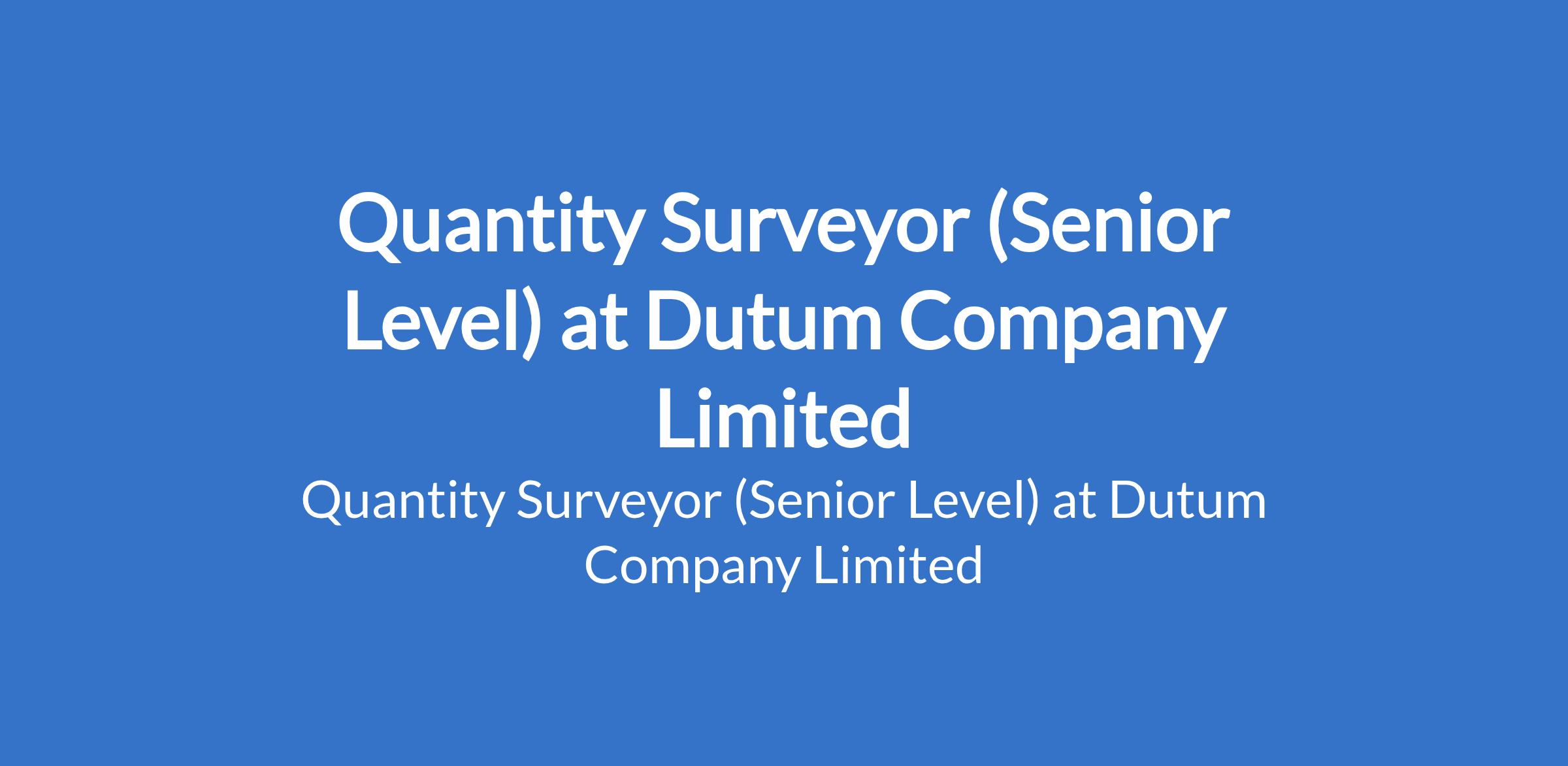 Dutum Company Limited is recruiting to fill the position of: Quantity Surveyor (Senior Level). The position is located in Lagos State. Interested candidates should possess a B.Sc / HND with at least 10 years of proven experience in cost management for multi-storey building projects with a reputable construction company.