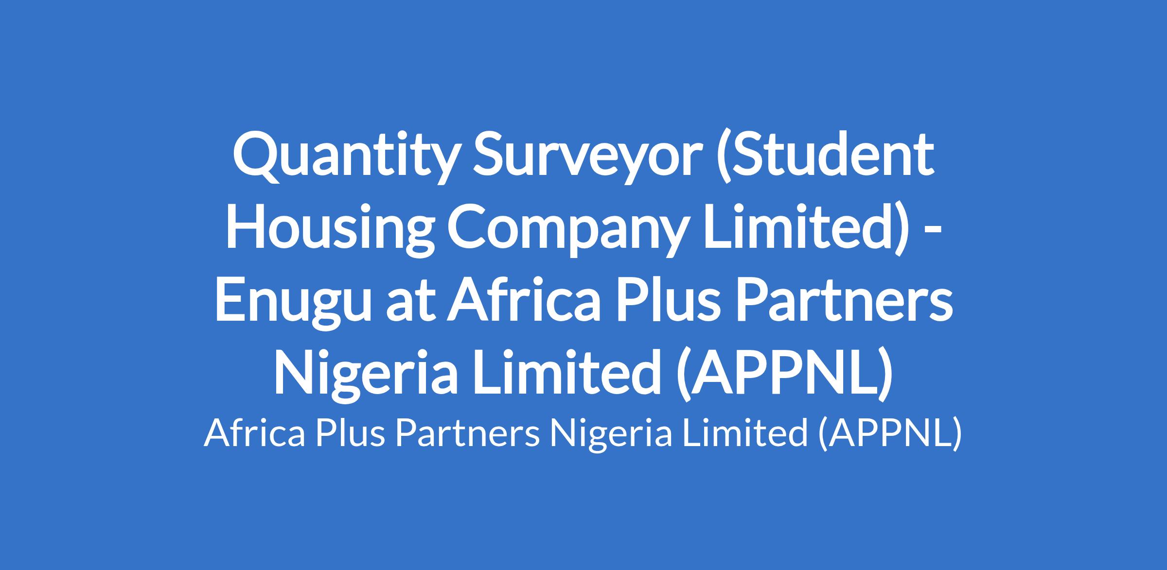 Quantity Surveyor (Student Housing Company Limited) - Enugu at Africa Plus Partners Nigeria Limited (APPNL)