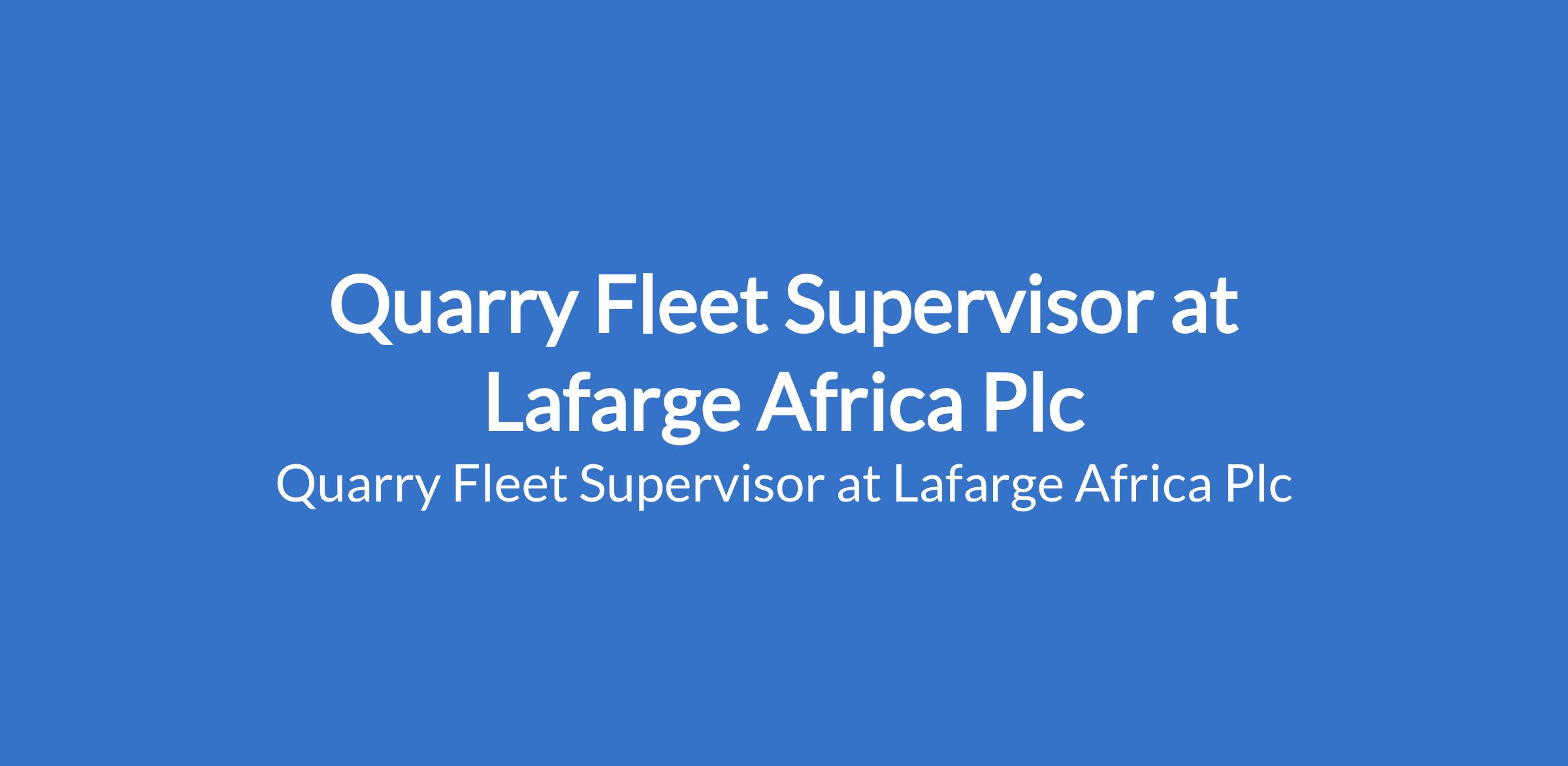 Lafarge Africa Plc is recruiting to fill the position of: Quarry Fleet Supervisor. The position is located in Sagamu, Ogun State. Interested candidates should possess minimum of an SSCE / OND qualification in any engineering or geosciences discipline with a minimum of 7 years post-qualification experience.