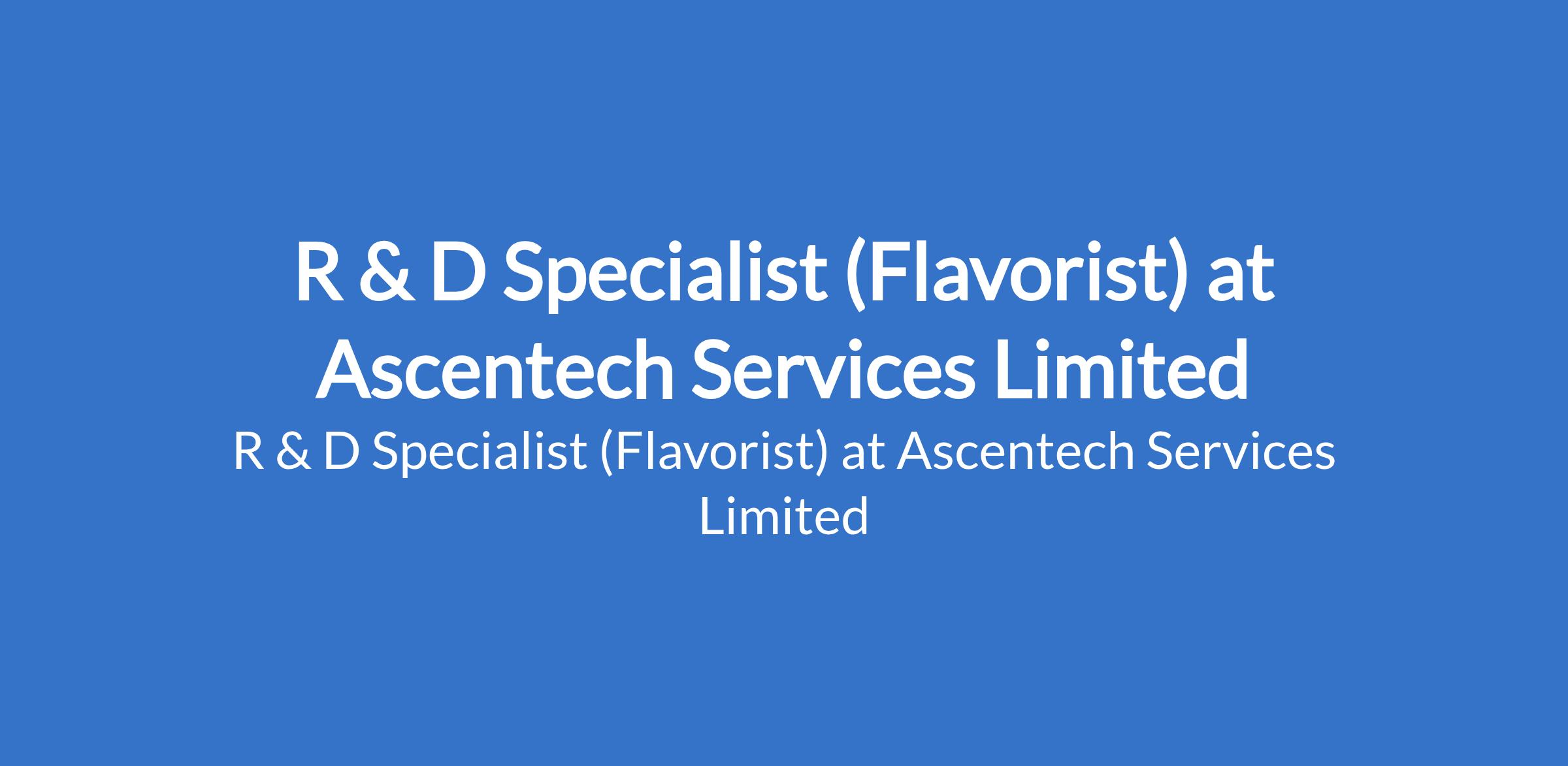 Ascentech Services Limited is recruiting to fill the position of: R & D Specialist (Flavorist). The position is located in Opic-Berger, Lagos State. Interested candidates should possess a Bachelors Degree in Food Science, Chemistry, or a related field with a minimum of 5 years in a similar position.