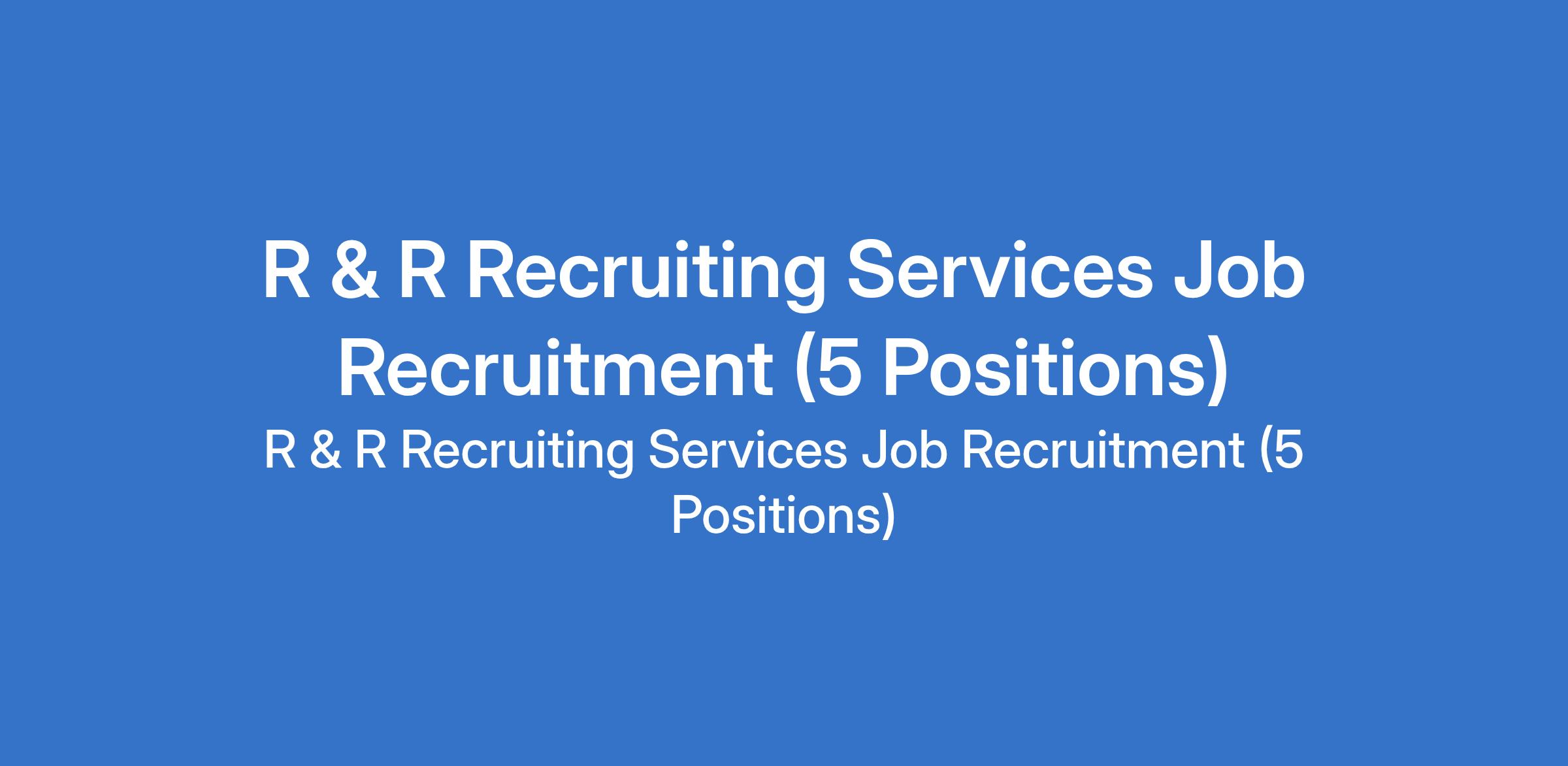 R & R Recruiting Services Job Recruitment (5 Positions)