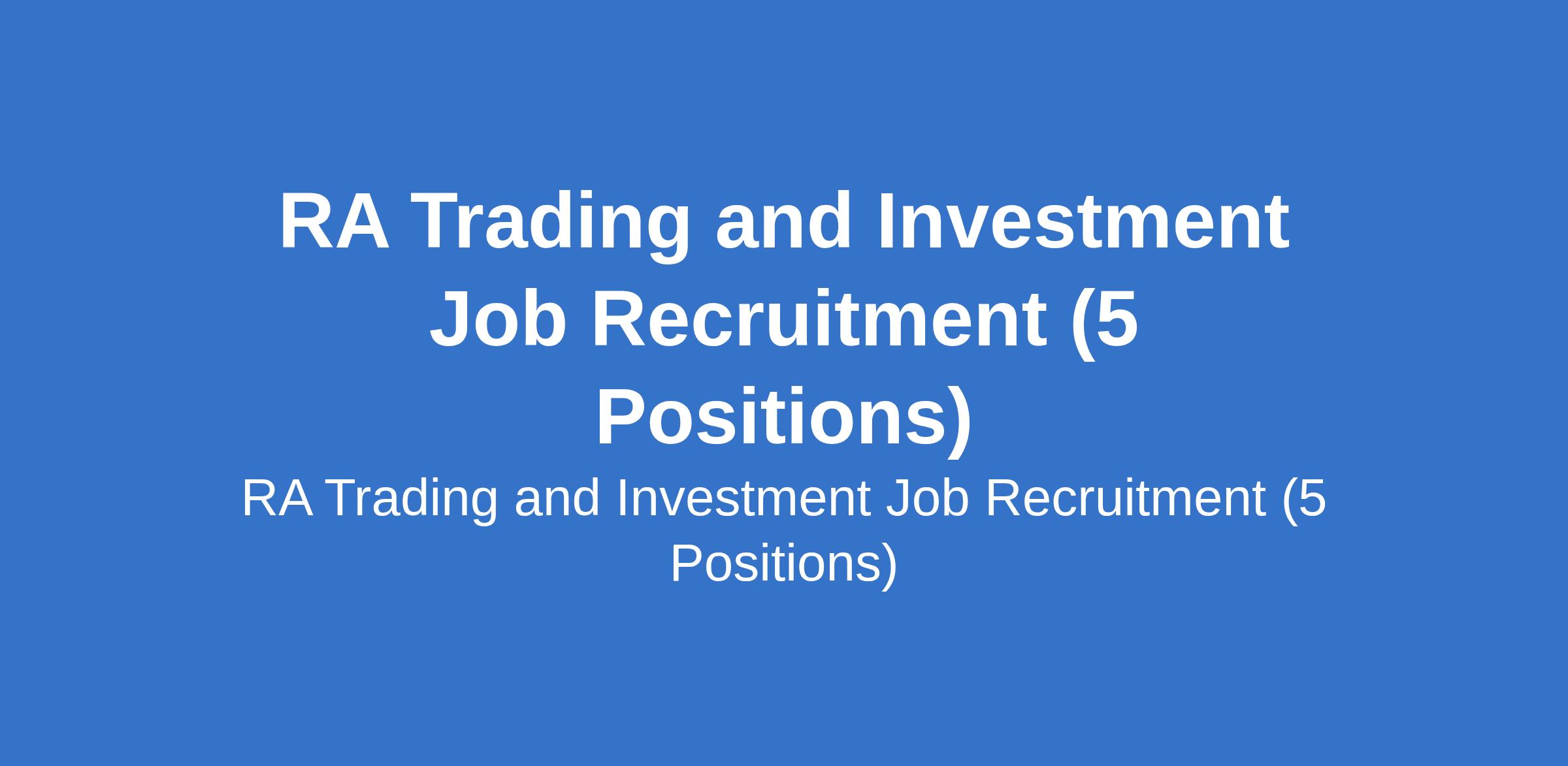 RA Trading and Investment Job Recruitment (5 Positions)