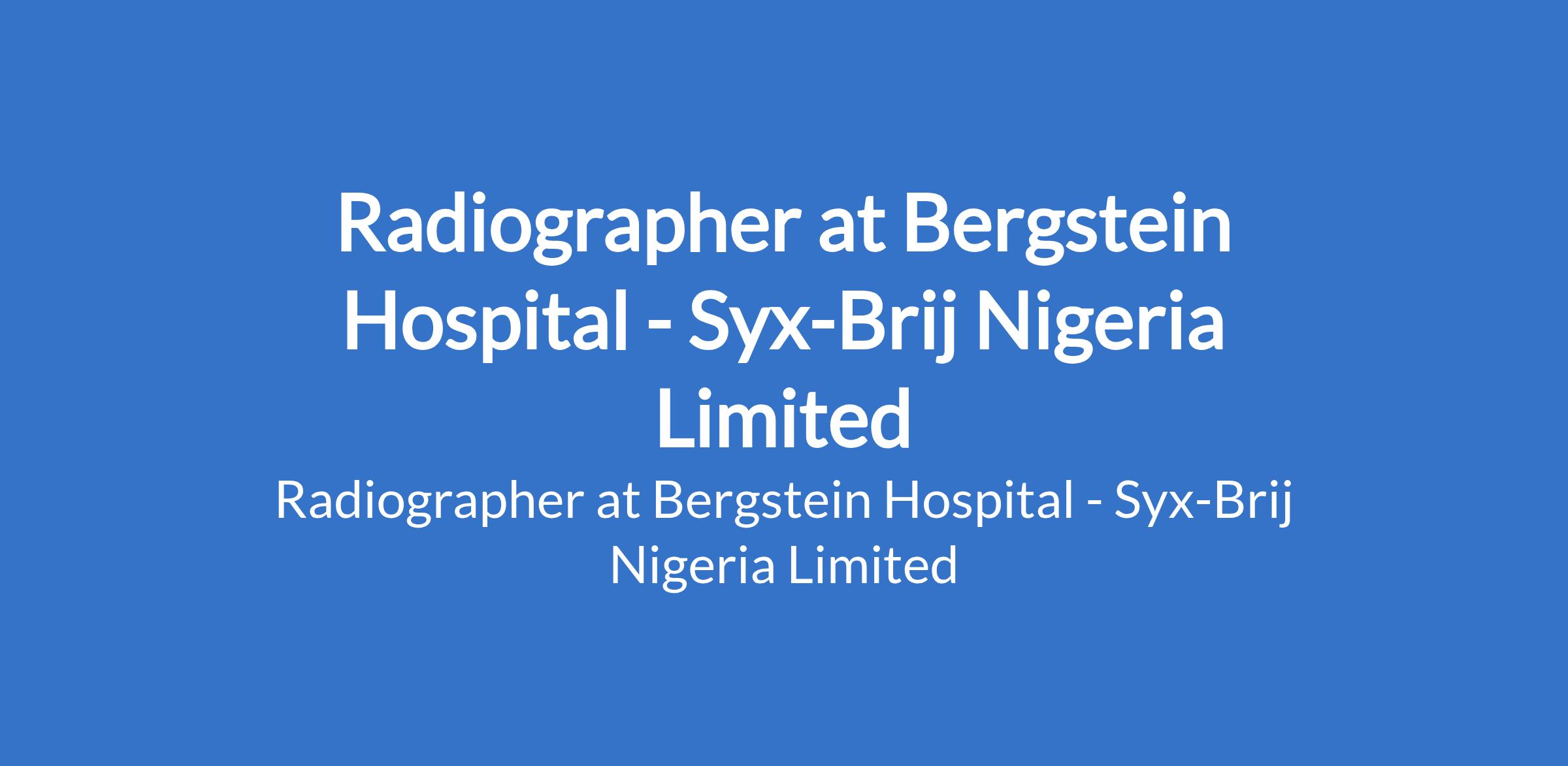 Syx-Brij Nigeria Limited - Our client, Bergstein Hospital is recruiting to fill the position of: Radiographer. The position is located in Ikorodu, Lagos State. Salary: N250,000 N350,000 per month. Interested candidates should possess a Bachelors Degree or Diploma in Radiography or Medical Imaging, valid practicing license and 1 3 years post-qualification experience.