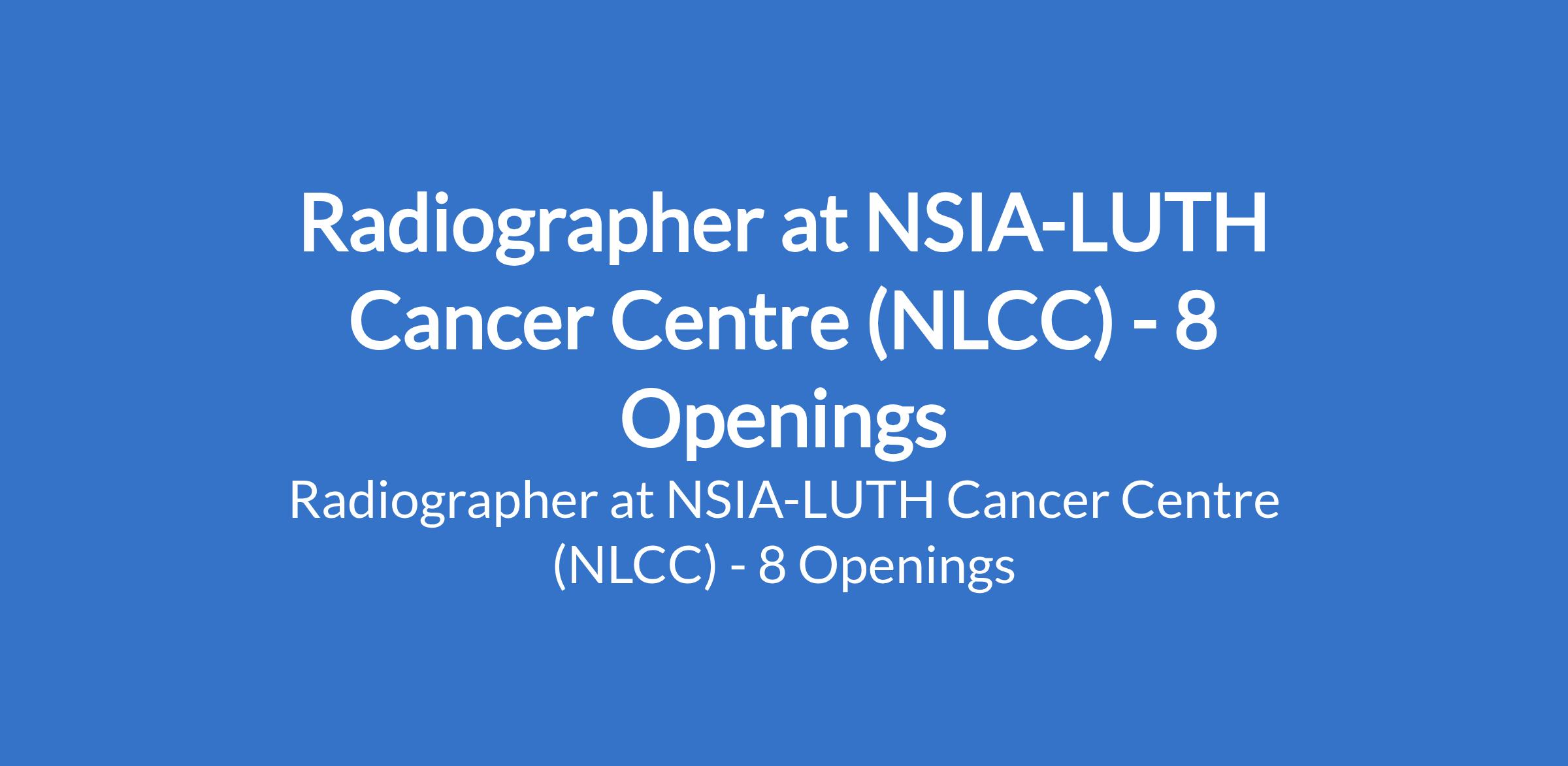 NSIA-LUTH Cancer Centre (NLCC) is recruiting to fill the position of: Radiographer. The position is located in Akwa Ibom, Bauchi, Delta, Enugu, Kwara, Oyo, Plateau and Yobe States. Interested candidates should possess a BSc. in Health Administration, Social Sciences, Business Administration, or a related field.