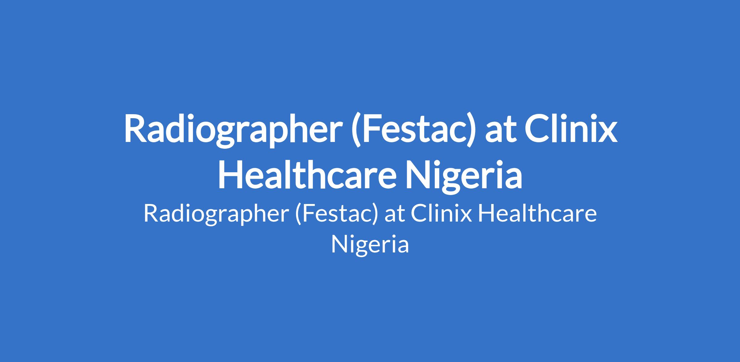 Clinix Healthcare Nigeria is recruiting to fill the position of: Radiographer. The position is located in Festac, Lagos State. Interested candidates should possess a Bachelor of Science (B.Sc.) in Radiography or Medical Radiography with 23 years post-qualification experience in a hospital or diagnostic imaging center.