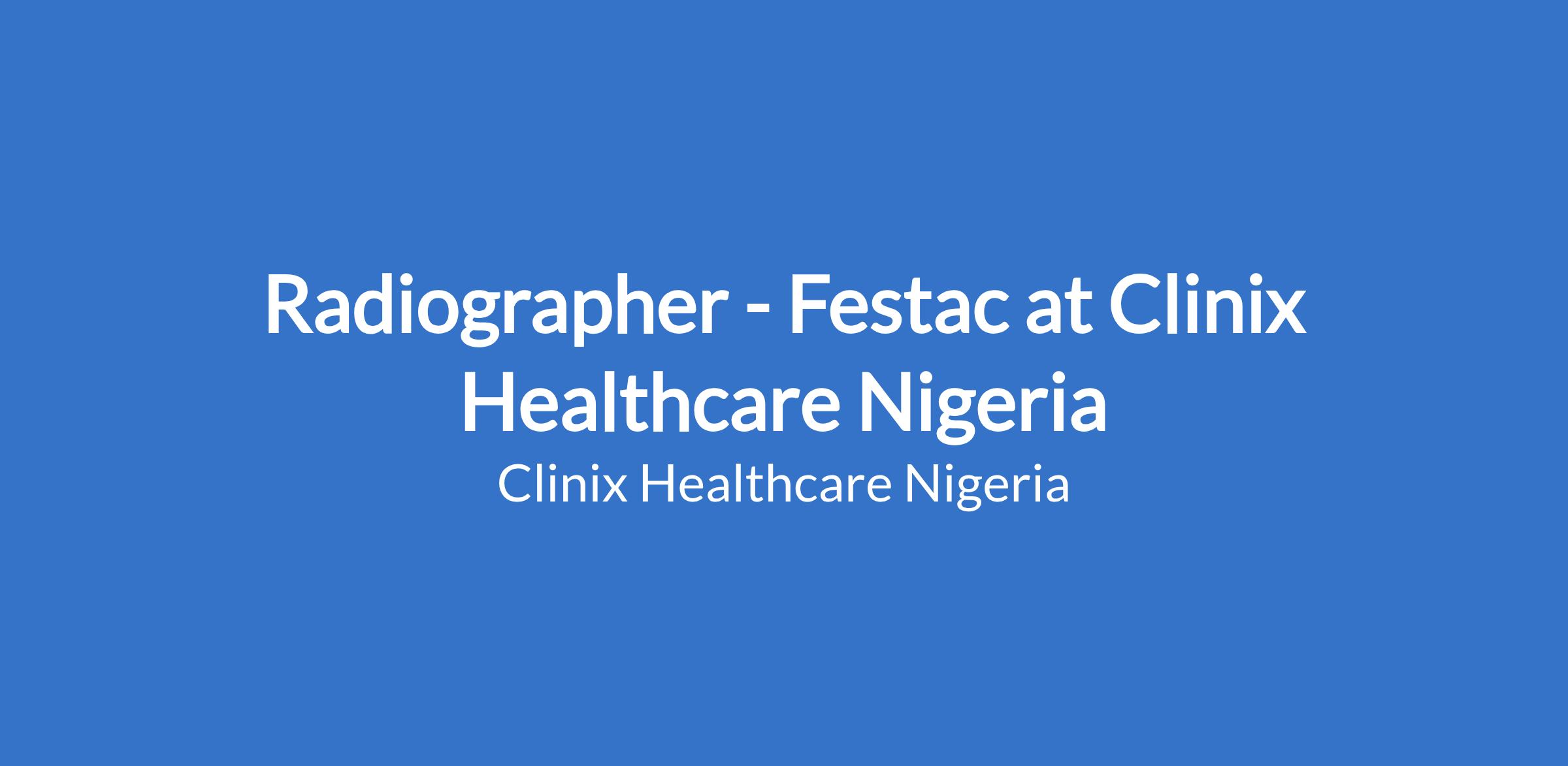 Clinix Healthcare is seeking a skilled, experienced, and patient-focused Radiographer to join our radiology team at the Festac branch. We are committed to delivering high-quality diagnostic imaging services with accuracy, safety, and compassion.