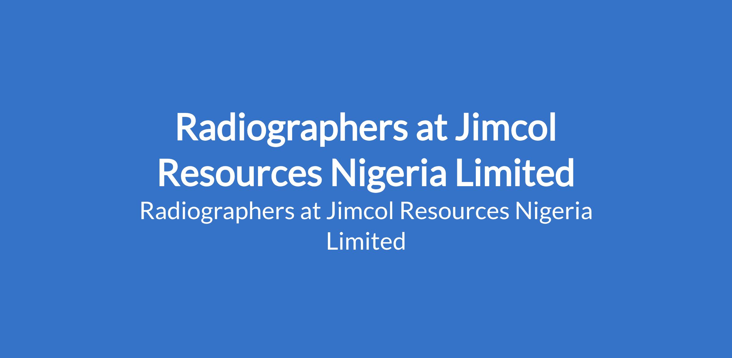 Jimcol Resources Nigeria Limited is recruiting to fill the position of: Radiographer. Interested candidates should possess relevant qualifications and certifications with 3 - 5 years experience in specified field.