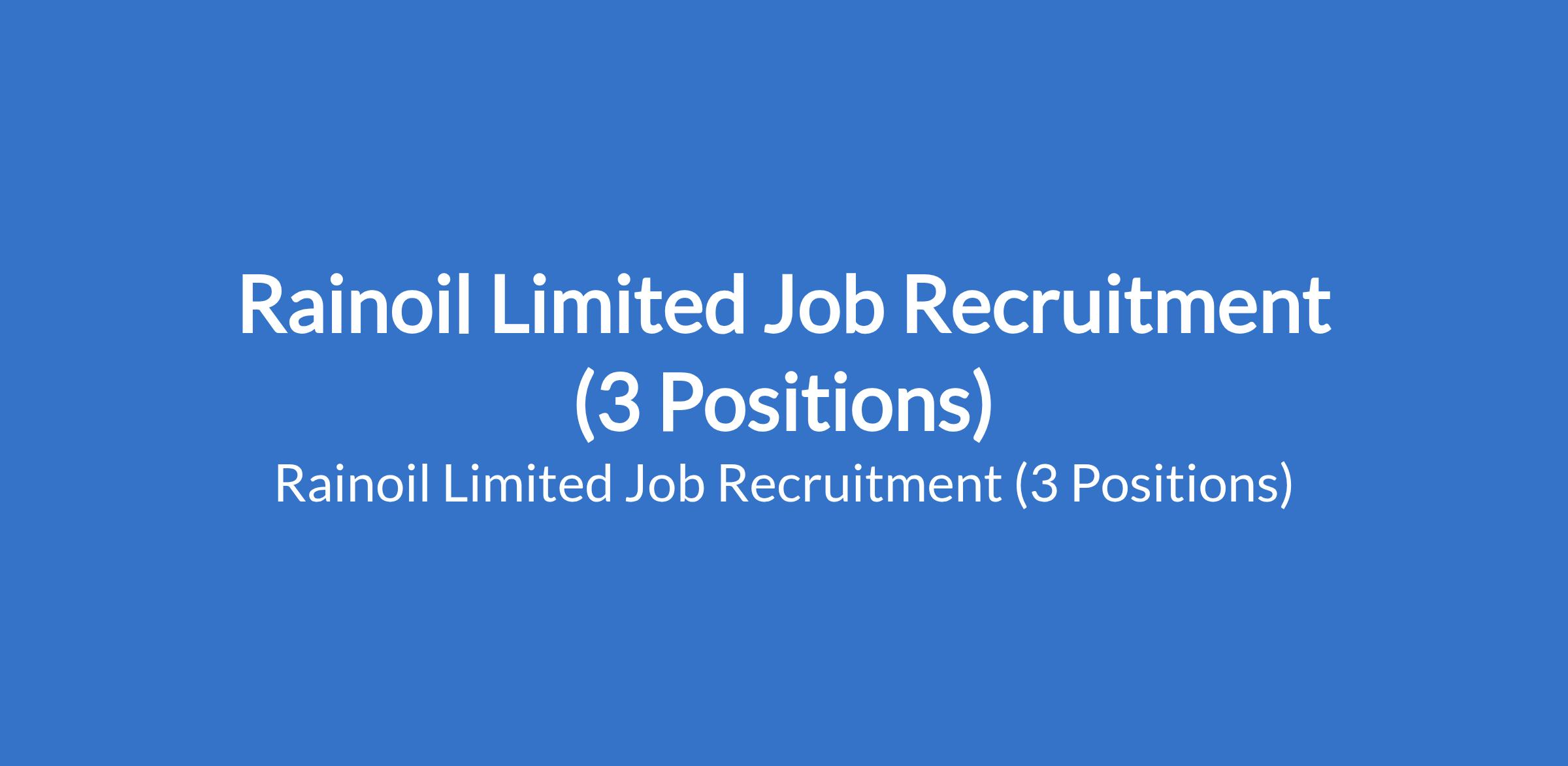 Rainoil Limited Job Recruitment (3 Positions)