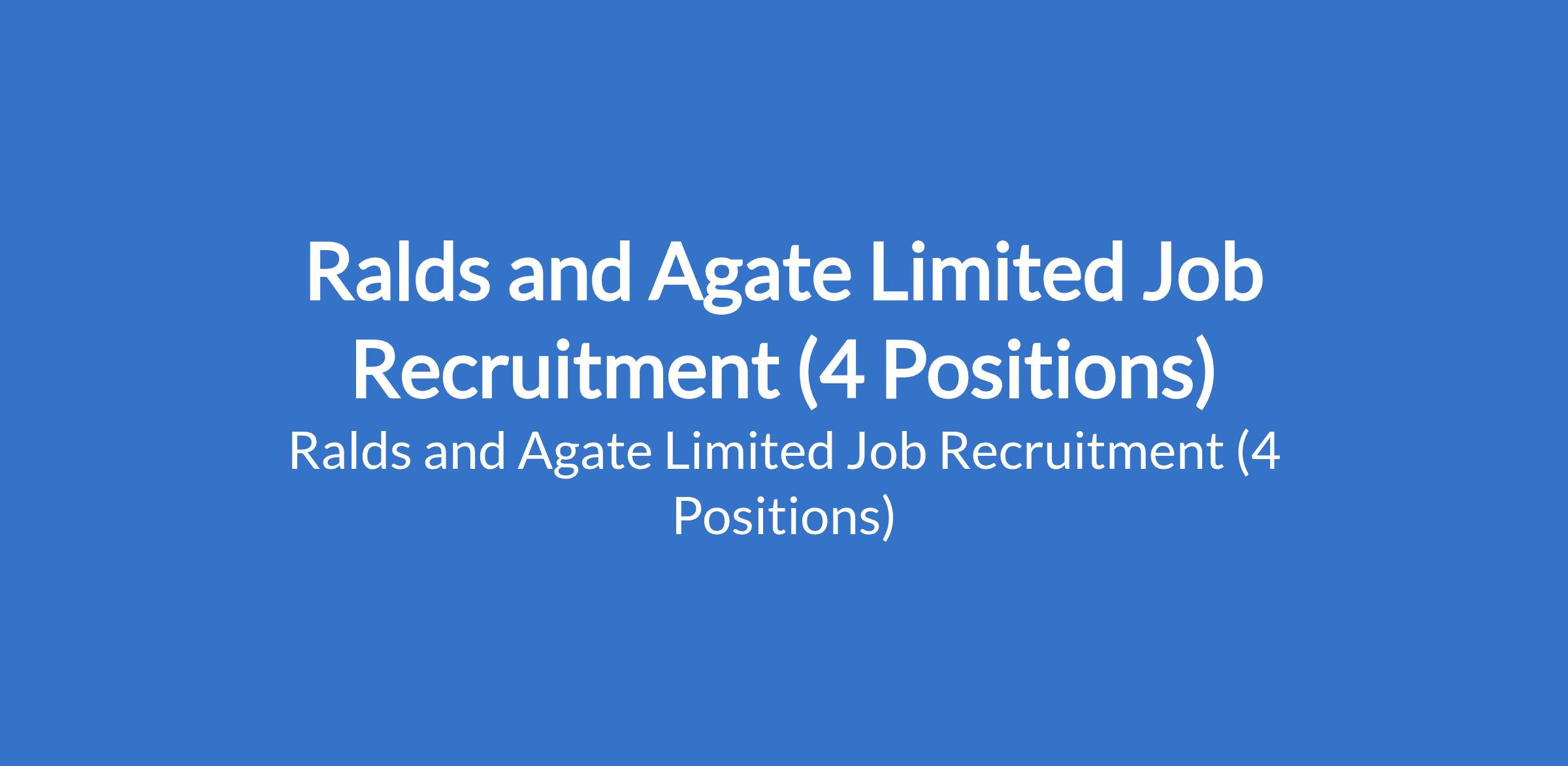 Ralds and Agate Limited Job Recruitment (4 Positions)