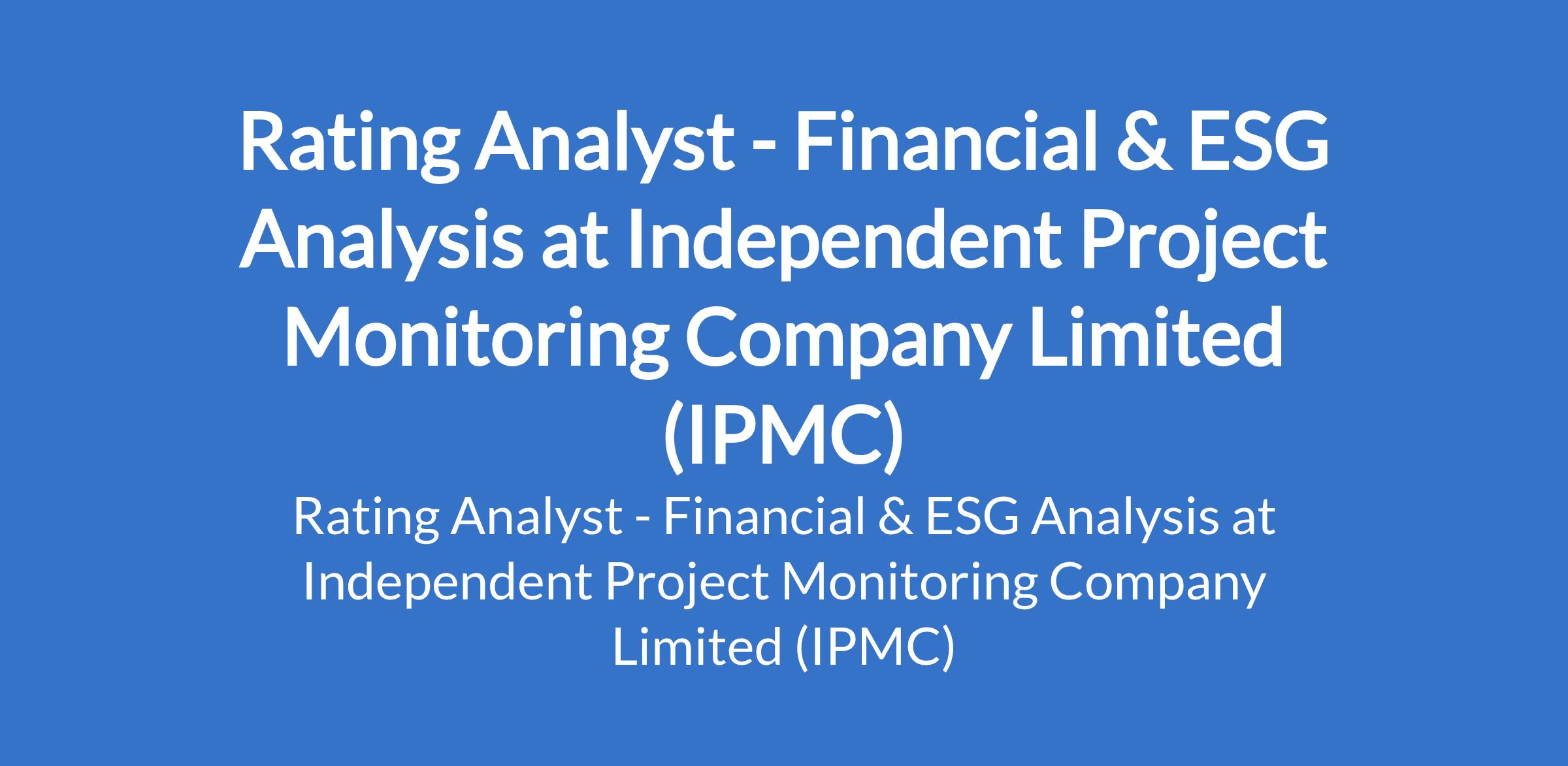 Independent Project Monitoring Company Limited (IPMC) is recruiting to fill the position of: Rating Analyst - Financial & ESG Analysis. The position is located in Lagos State. The Rating Analyst will support the development and assignment of credit and ESG ratings, providing rigorous financial and non-financial analysis to inform rating decisions. Interested candidates should possess relevant qualifications.