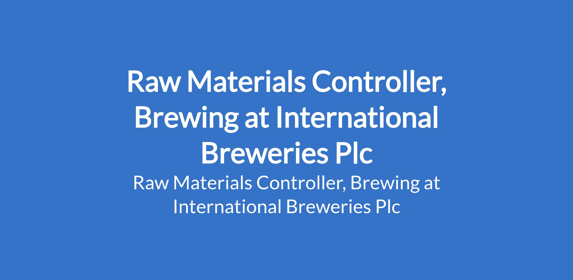 International Breweries Plc is recruiting to fill the position of: Raw Materials Controller, Brewing. The position is located in Onitsha, Anambra State. Interested candidates should possess a relevant Degree or National Diploma with at least 3 years experience in a logistics or procurement environment.