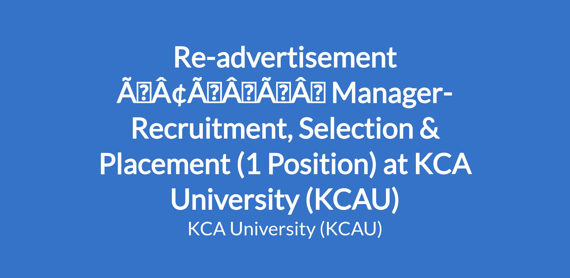 Re-advertisement âÃÂàManager- Recruitment, Selection & Placement (1 Position) at KCA University (KCAU)