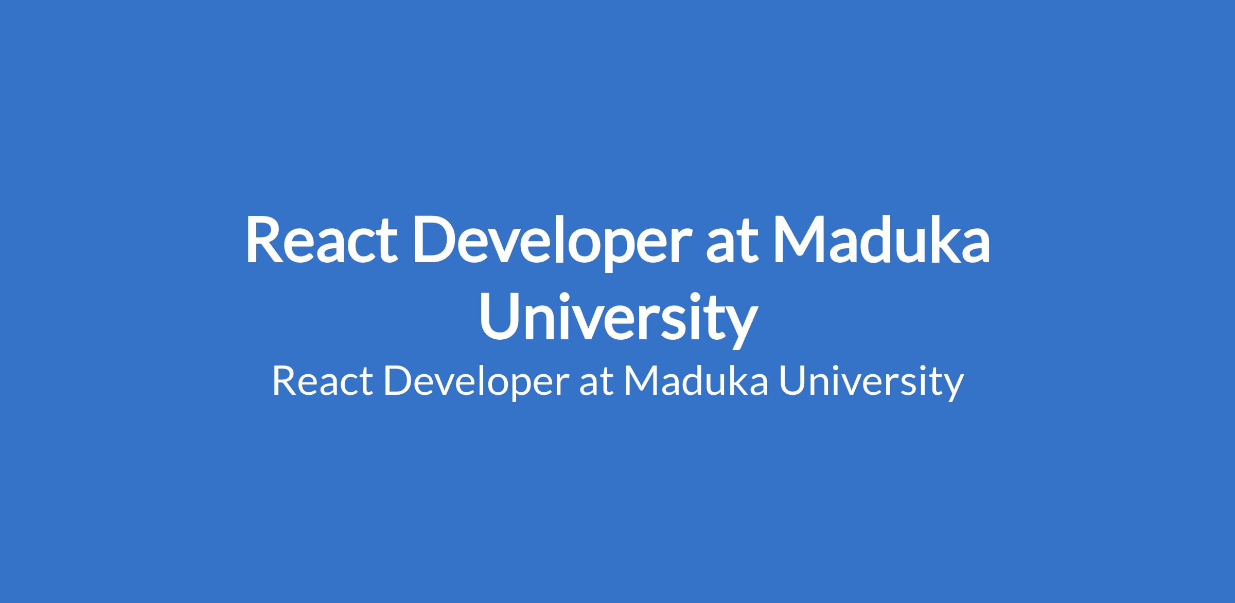 Maduka University is recruiting to fill the position of: React Developer. The position is located in Enugu State. The ideal candidate will be responsible for developing intuitive user interfaces and ensuring seamless integration with backend services. Interested candidates should possess a Bachelors Degree in Computer Science, Software Engineering, or related fields with 24 years of experience working with React.js.