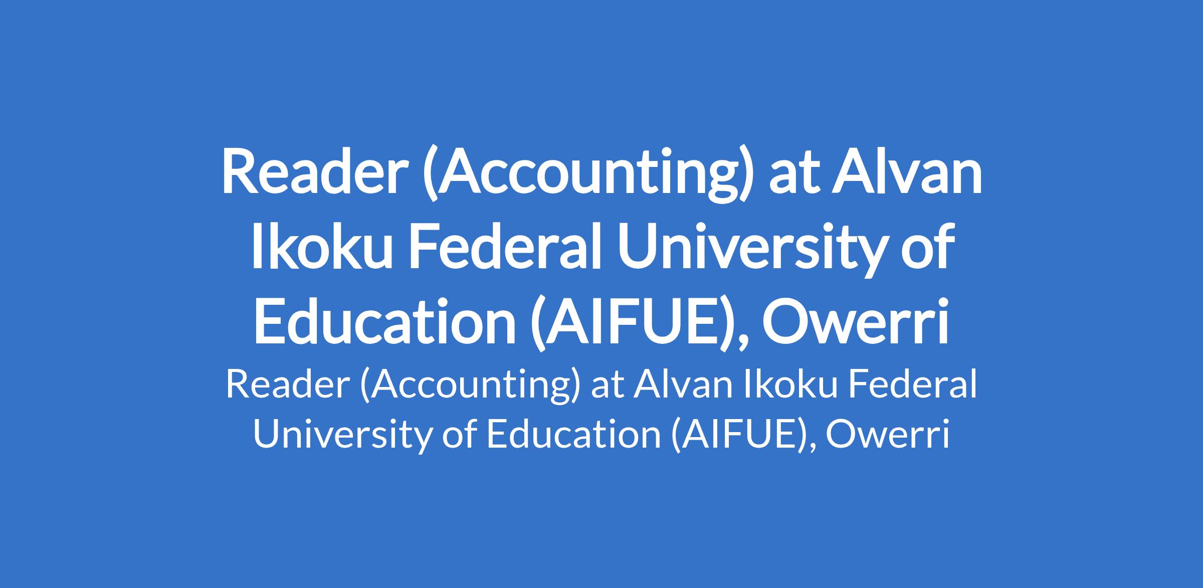 Alvan Ikoku Federal University of Education (AIFUE), Owerri invites applications from suitably qualified candidates for the position of: Reader (Accounting). The position is located in Imo State. Interested candidates should possess a PhD Degree with not less than twelve (12) years of university teaching/research experience and a minimum of three (3) years as Senior Lecturer.