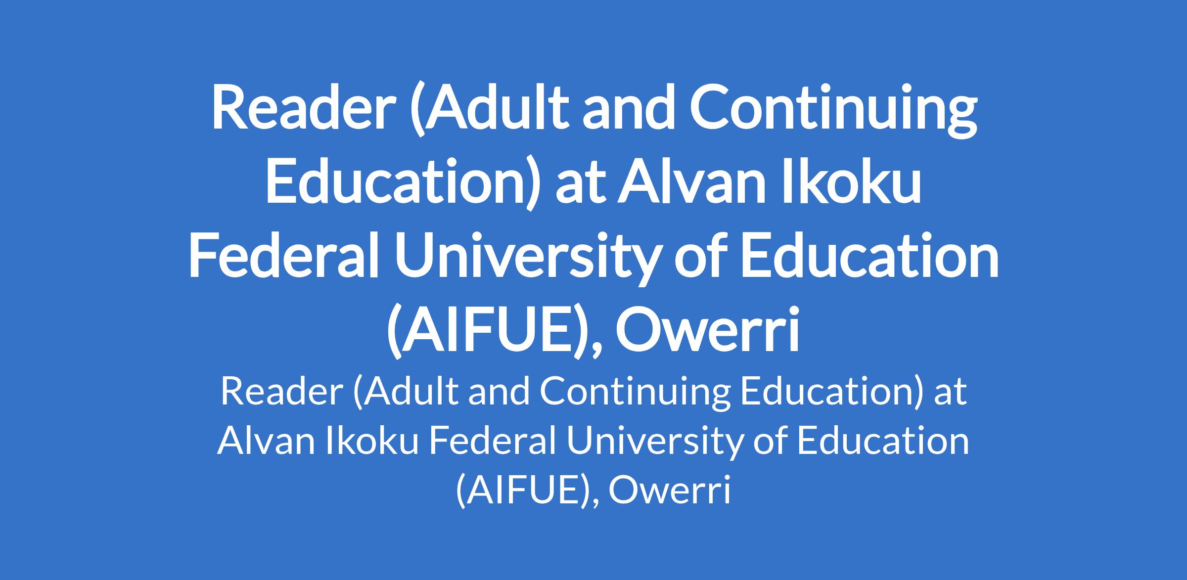 Alvan Ikoku Federal University of Education (AIFUE), Owerri invites applications from suitably qualified candidates for the position of: Reader (Adult and Continuing Education). The position is located in Imo State. Interested candidates should possess a PhD Degree with not less than twelve (12) years of university teaching/research experience and a minimum of three (3) years as Senior Lecturer.