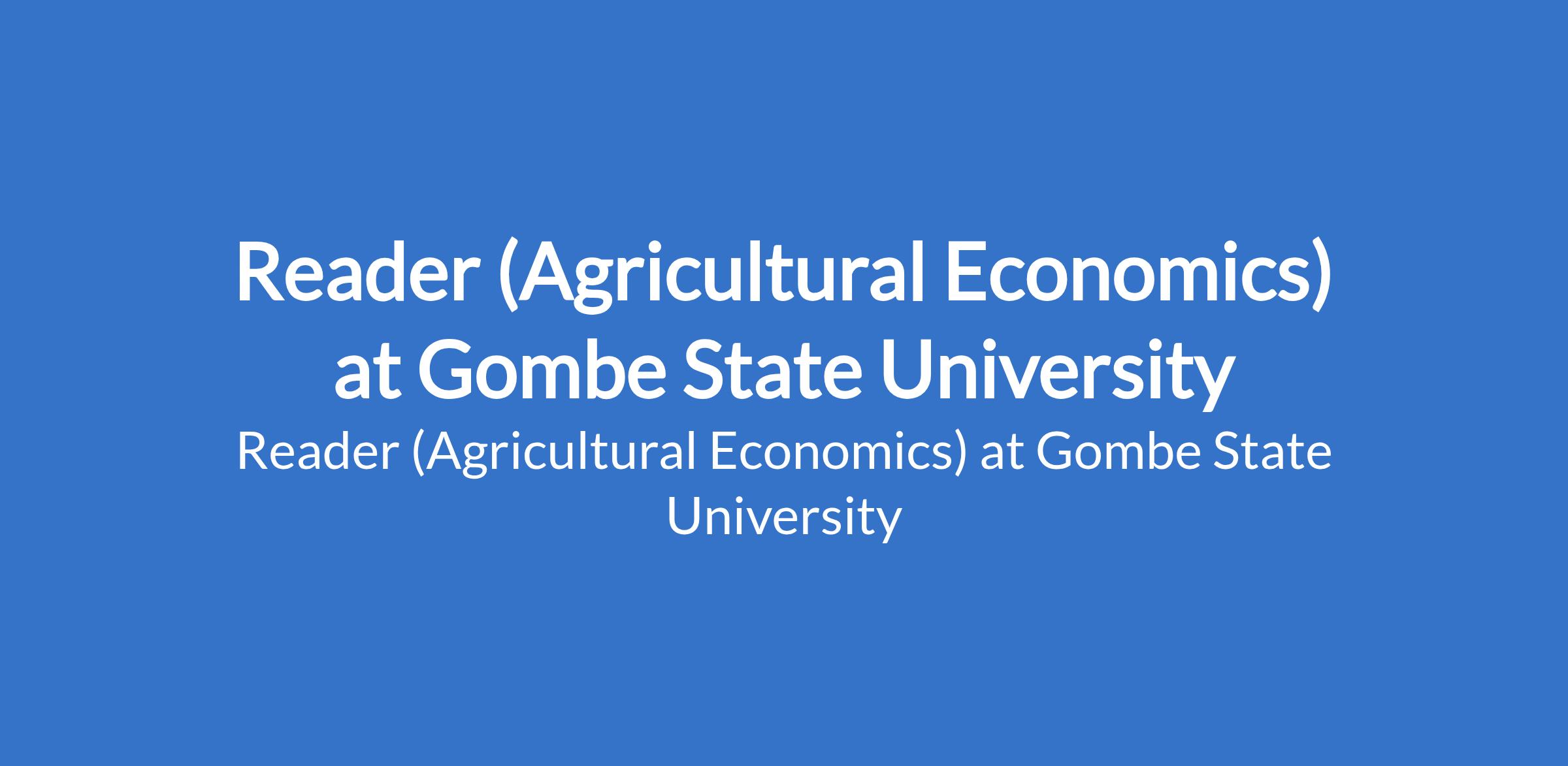 Gombe State University invites applications from suitable candidates to fill the position of: Reader (Agricultural Economics). The position is located in Tudun - Wada, Gombe State. Interested candidates should possess a Ph.D in a relevant discipline with 10 - 12 years of teaching / research experience; a minimum of three years as Senior Lecturer and at least 60 publication points with evidence of postgraduate supervision.