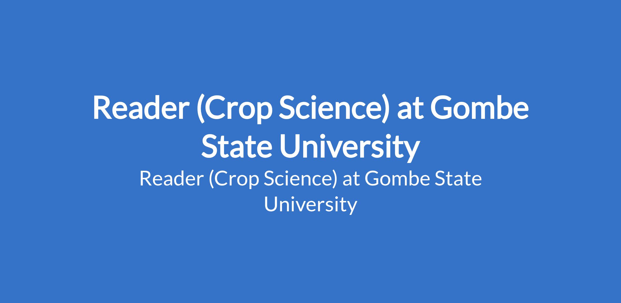 Gombe State University invites applications from suitable candidates to fill the position of: Reader (Crop Science). The position is located in Tudun - Wada, Gombe State. Interested candidates should possess a Ph.D in a relevant discipline with 10 - 12 years of teaching / research experience; a minimum of three years as Senior Lecturer and at least 60 publication points with evidence of postgraduate supervision.