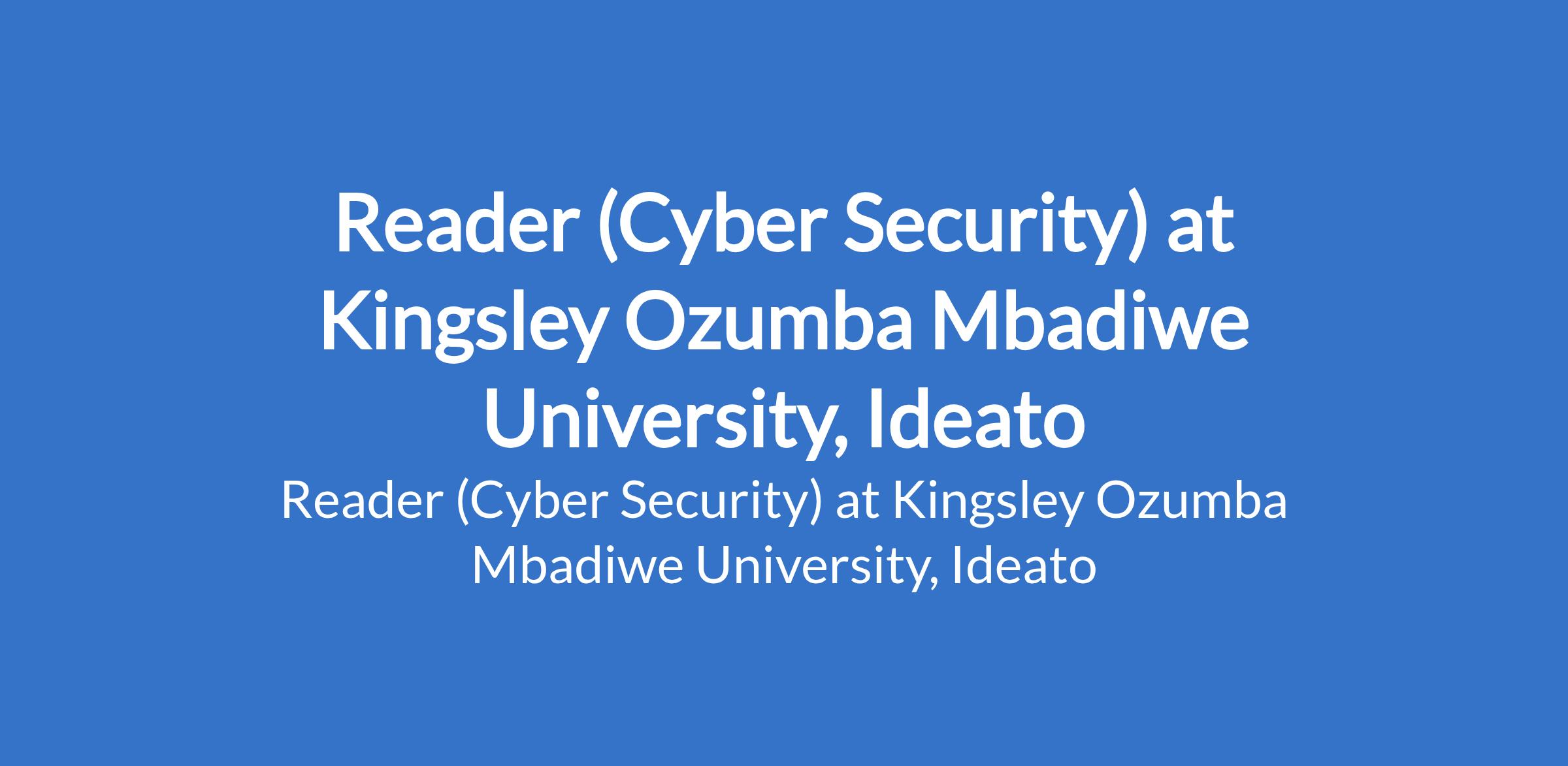 Kingsley Ozumba Mbadiwe University, Ideato invites applications for the position of: Reader (Cyber Security). The position is located in Imo State. Interested candidates should possess a Doctorate Degree in the relevant field with a minimum of ten (10) years post qualification experience in teaching and research in a university.