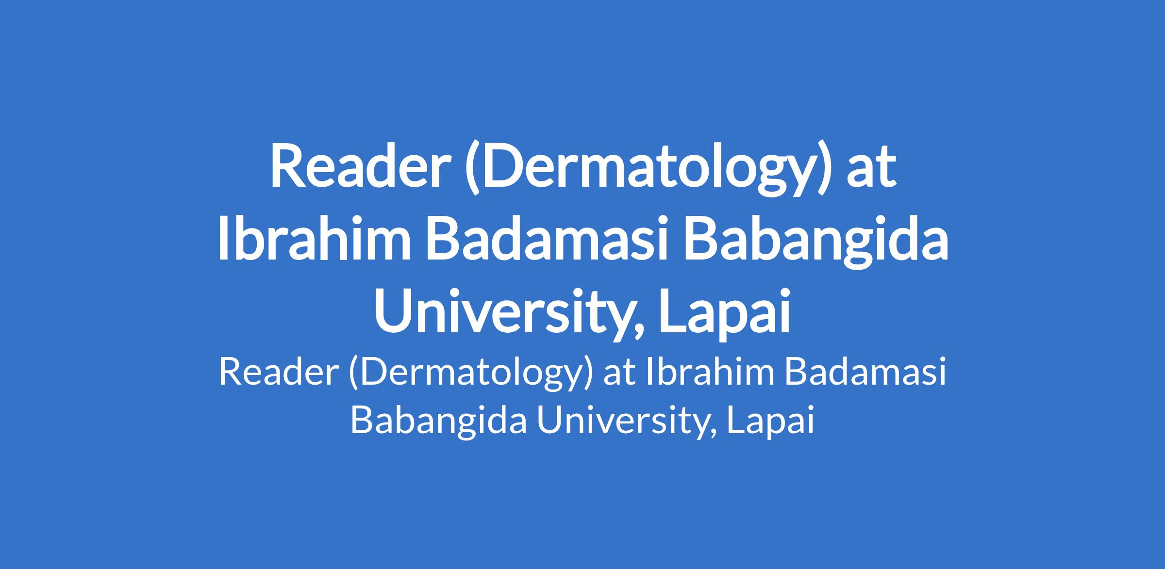 Ibrahim Badamasi Babangida University, Lapai invites applications from suitably qualified candidates to fill the position of: Reader (Dermatology). The position is located in Niger State. Interested candidates should be holders of M.B.B.S Degree from recognized Universities with PhD, Fellowship of the National Postgraduate Medical College of Nigeria or its equivalent in the relevant specialty/sub specialty with at least 9 years relevant experience.