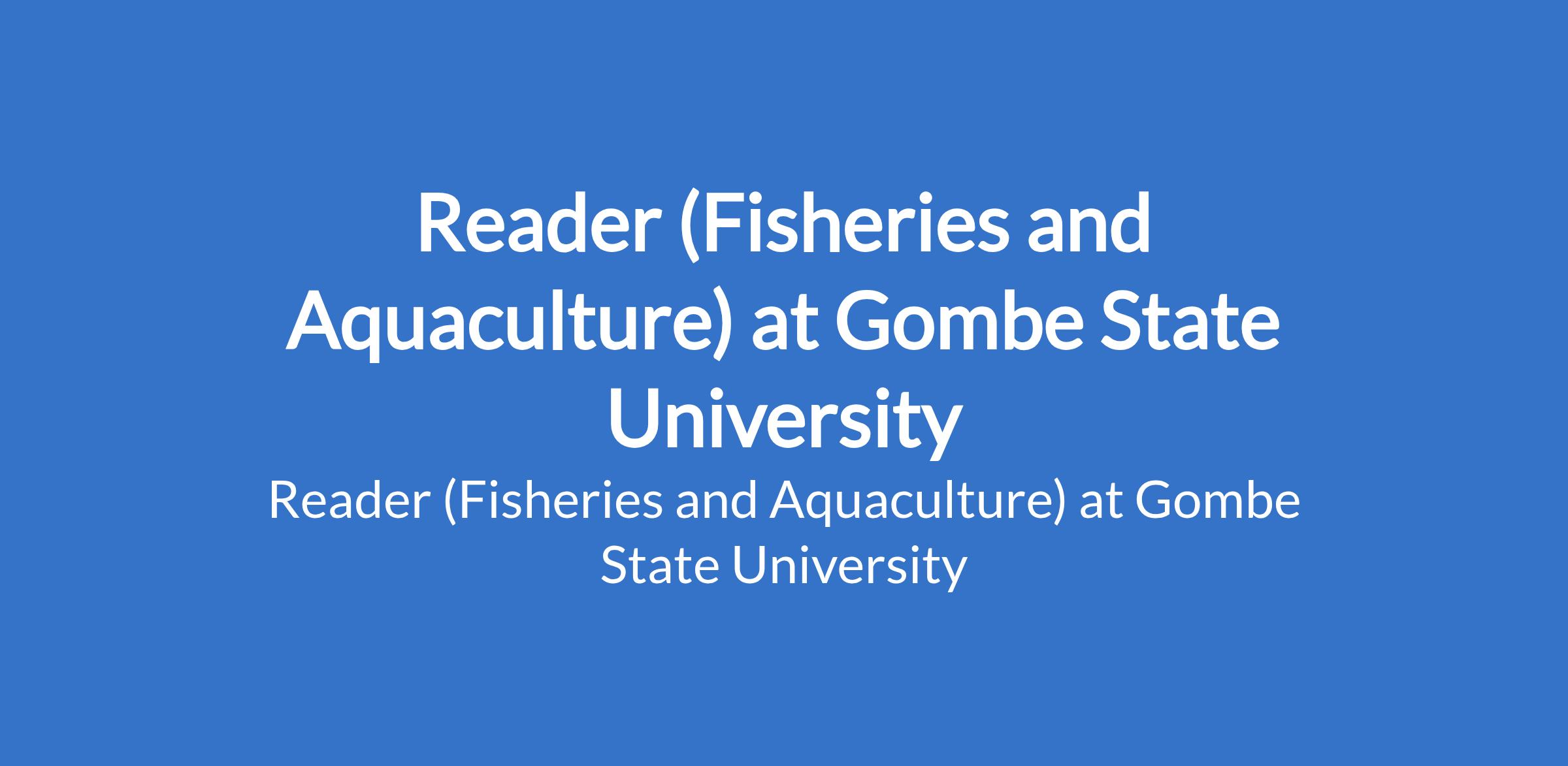 Gombe State University invites applications from suitable candidates to fill the position of: Reader (Fisheries and Aquaculture). The position is located in Tudun - Wada, Gombe State. Interested candidates should possess a Ph.D Degree in a relevant discipline with 10 - 12 years of teaching / research experience; a minimum of three years as Senior Lecturer and at least 60 publication points with evidence of postgraduate supervision.